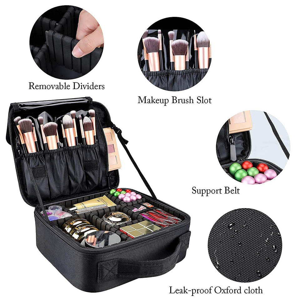 size for carry all your makeup cosmetics accessories. Just right for professional makeup artist or makeup amateur. * ★EASY TO CARRY: This makeup case comes with a shoulder strap, use it as a shoulder bags or backpack. The back of the cosmetic bag can be mounted on your suitcase without taking up the position inside the suitcase. It is easy to carry and you can take your cosmetics anywhere. * ★DIY YOUR OWN PLACE: This cosmetic case has 7 adjustable partitions, you can move the partitions as needed, give you more space, organize all of your cosmetics, makeup tools, toiletry jewelry; Makeup brushes holder with plastic cover, not afraid of the residual cosmetics on the brush. * ★HIGH QUALITY MATERIAL: This makeup case is made of high quality oxford fabric which is durable, water resistant and easy to clean. Do not need to worry it will damage on the cloth fabric material. * ★BEST GIFT CHOICE: It has a stylish appearance and excellent practicality and durability. It is a trend item for makeup artists, stylists and makeup lovers. Suitable for a variety of holiday gifts, and perfect for girls to use. It is undoubtedly the best gift choice. |