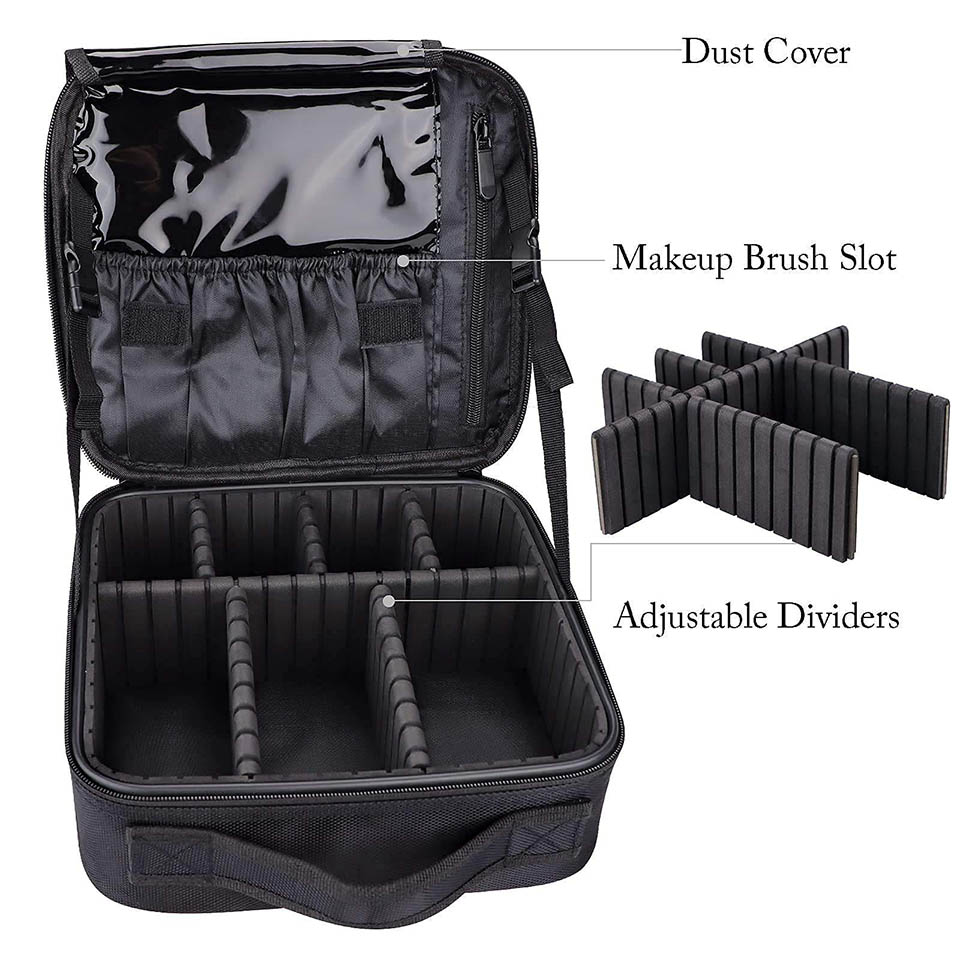 13.5" Portable Makeup Cosmetic Case Brush Organizer Artist Storage Bag With Adjustable Dividers for Make Up Accessories
