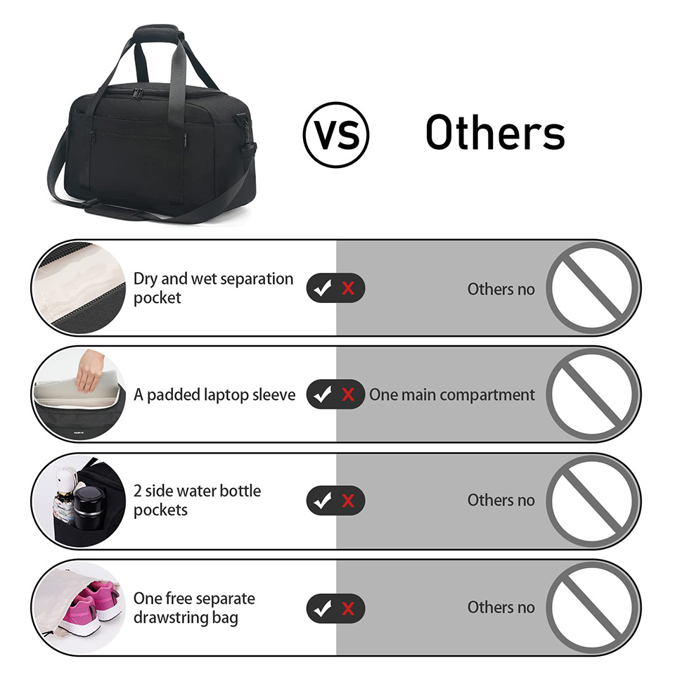 Essential details Style: Fashion Place of Origin: Fujian, China Material: Polyester Have Drawbars: NO Pattern Type: Letter Gender: Unisex Closure Type: zipper Product name: Tote Gym Bag Logo: Customs Logo Color: Customized Colors Packing: 1pc/polybag Design: Fashionable Feature: Lightweight Function: Multi-functional Usage: Outdoor Sports Type: Wear-resistant Waterproof Duffle Gym Bag