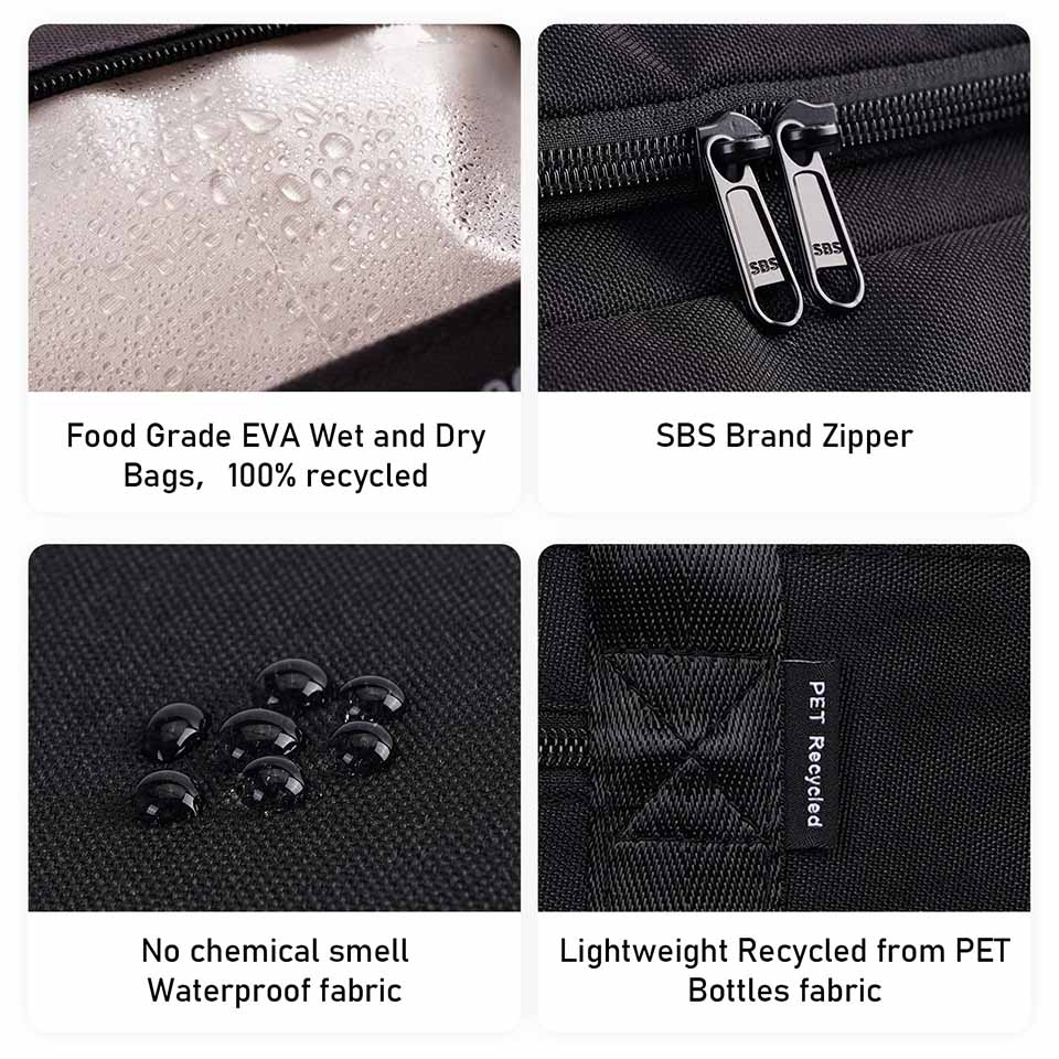 The Transition Bag holds everything you need on race day yet is compact enough that you won't feel like you're setting off on an expedition. The large insulated bottom section separates wet gear from the main compartment.Fully loaded this bag fits all airline carry-on requirements.