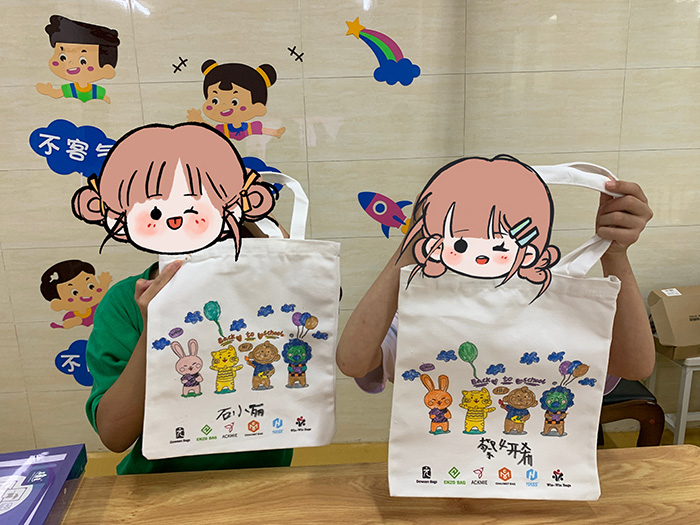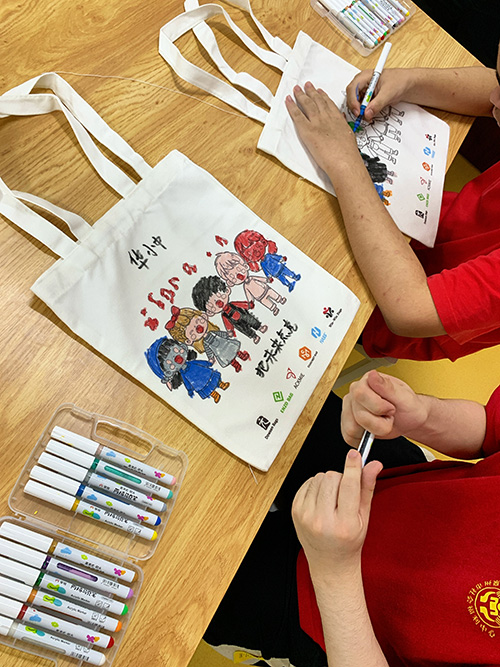 With the assistance of professional art teachers and volunteers, the children used eco-friendly materials and acrylic paint pens to draw patterns on specially made eco-bags.