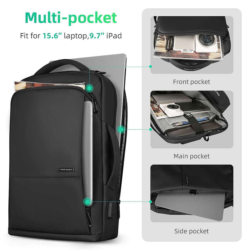 3 in 1 Waterproof Travel Business Backpack with Removable Buckle and USB Charging Port
