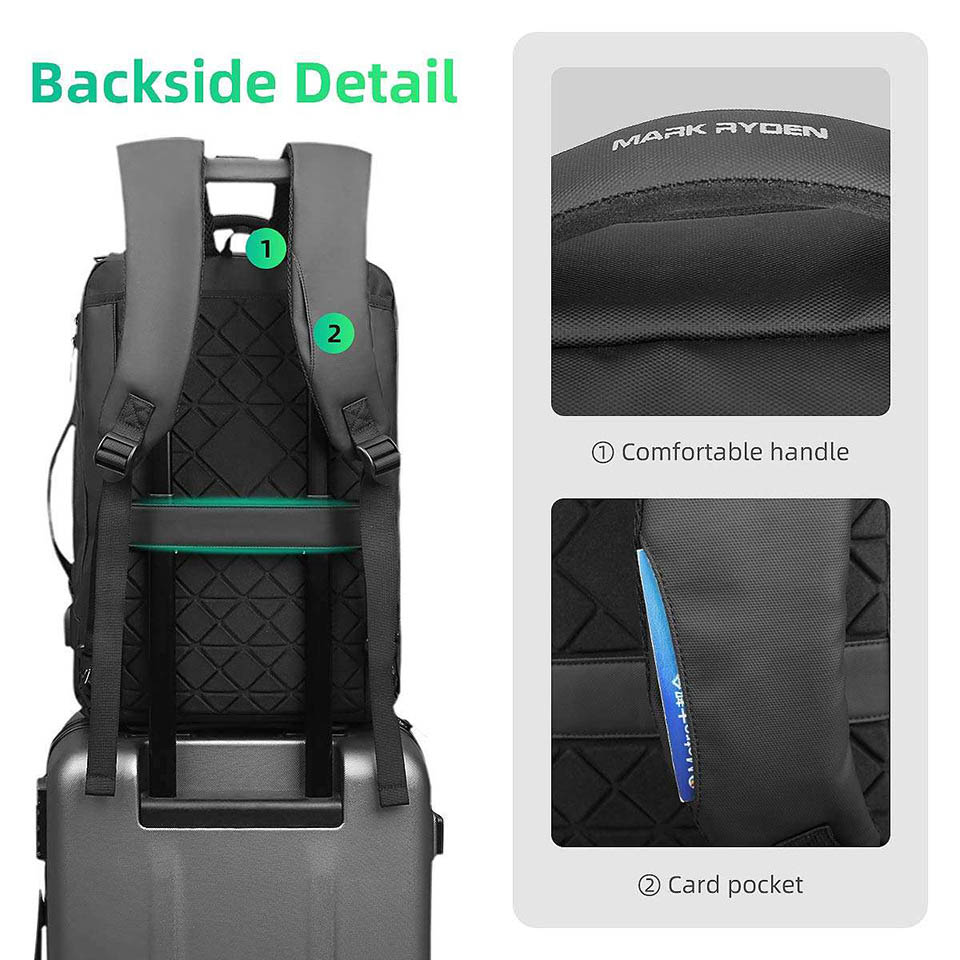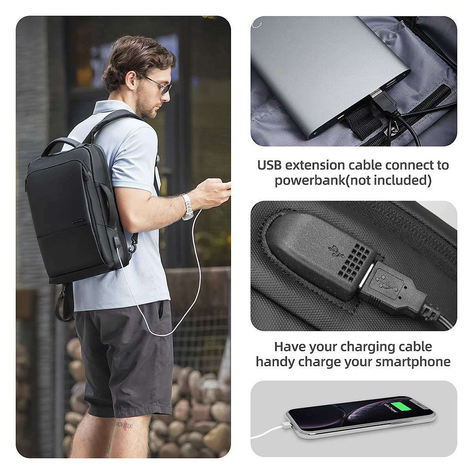 * ★ USB Charging Port Design: The usb backpack comes with a charging port you can link your phone to and easily charge during outdoors and travel. Place your power bank inside the bag and connect your phone to the outer port (built-in charging cable inside). Please note that this travel bag doesn't power itself, USB charging port only provides easy access to charge. * ★ Comfy and Breathable: Tech backpack with back U shaped three-dimensional ventilation design helps with air convection,ventilation and heat elimination. Wide breathable mesh shoulder straps with plentiful sponge pads help relieve the stress from your shoulder. Both sides of the shoulder strap with lanyard design can hang sunglasses and other small pendants. At the same time, The luggage strap on the back can help secure the backpack to the suitcase, which will make your journey easier. * ★ Changeable Style Back Pack: The work backpack is equipped with a side strap that allows it to change into a crossbody bag. And the top and side handles allow you to use it as a handbag when the shoulder strap is hidden in the back space. You can adjust the backpack style according to your individual needs. * ★ Waterproof Backpack: The carry on backpack is made of Oxford fabric with high density nylon lining, which has good waterproof performance, protects your belongings from splashing water and rain, is perfect for business traveling, weekend getaways, shopping, going to school, professional office work and other outdoor activities. |