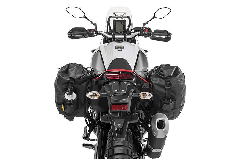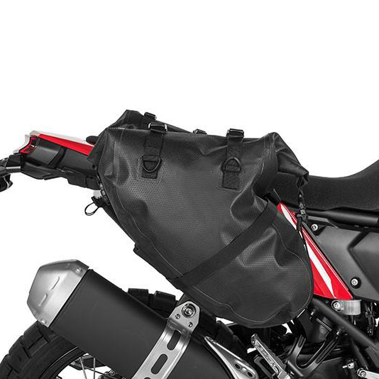 The saddle bags have the ability to expand up to 20 liters each, offering generous room for clothing, provisions, and essential items for a weekend excursion. Equipped with two external pockets for fuel or water containers and a secure mounting system using multiple straps, our Extreme Saddle Bags provide both convenience and stability for your biking escapades.