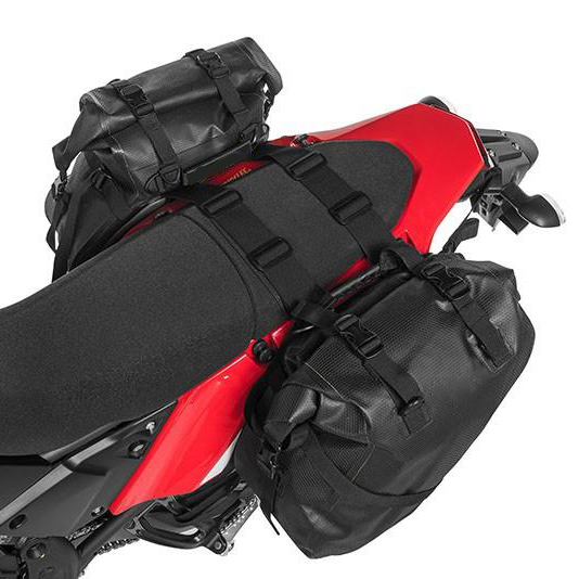 Can be mounted either to your sissy bar or your seat. It mounts using a seat harness or adjustable sissy bar strap system that easily attaches the bag to your motorcycle’s seat, luggage rack, or sissy bar.