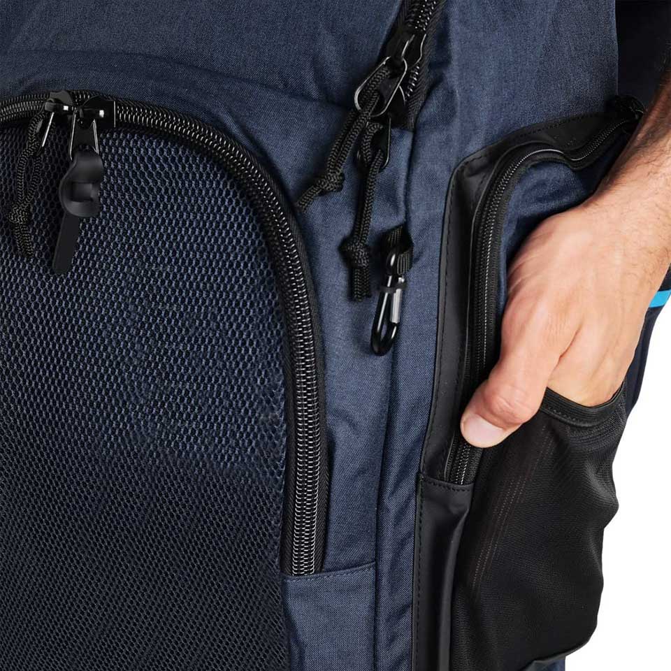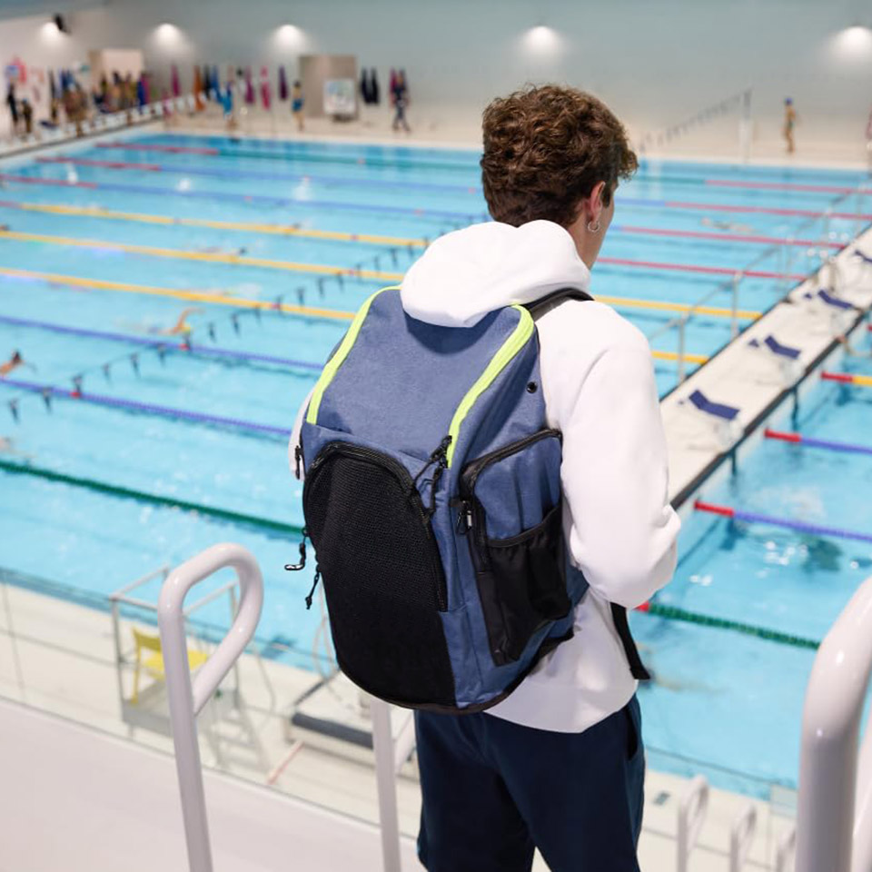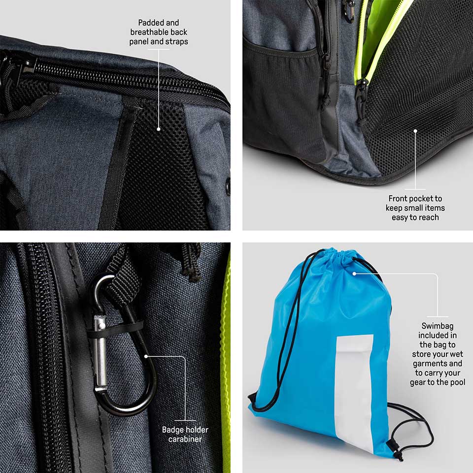 for swimmers with its many pockets and the reinforced base that protects against moisture compartment and double pocket to separate dry and wet things, spacious side pockets for