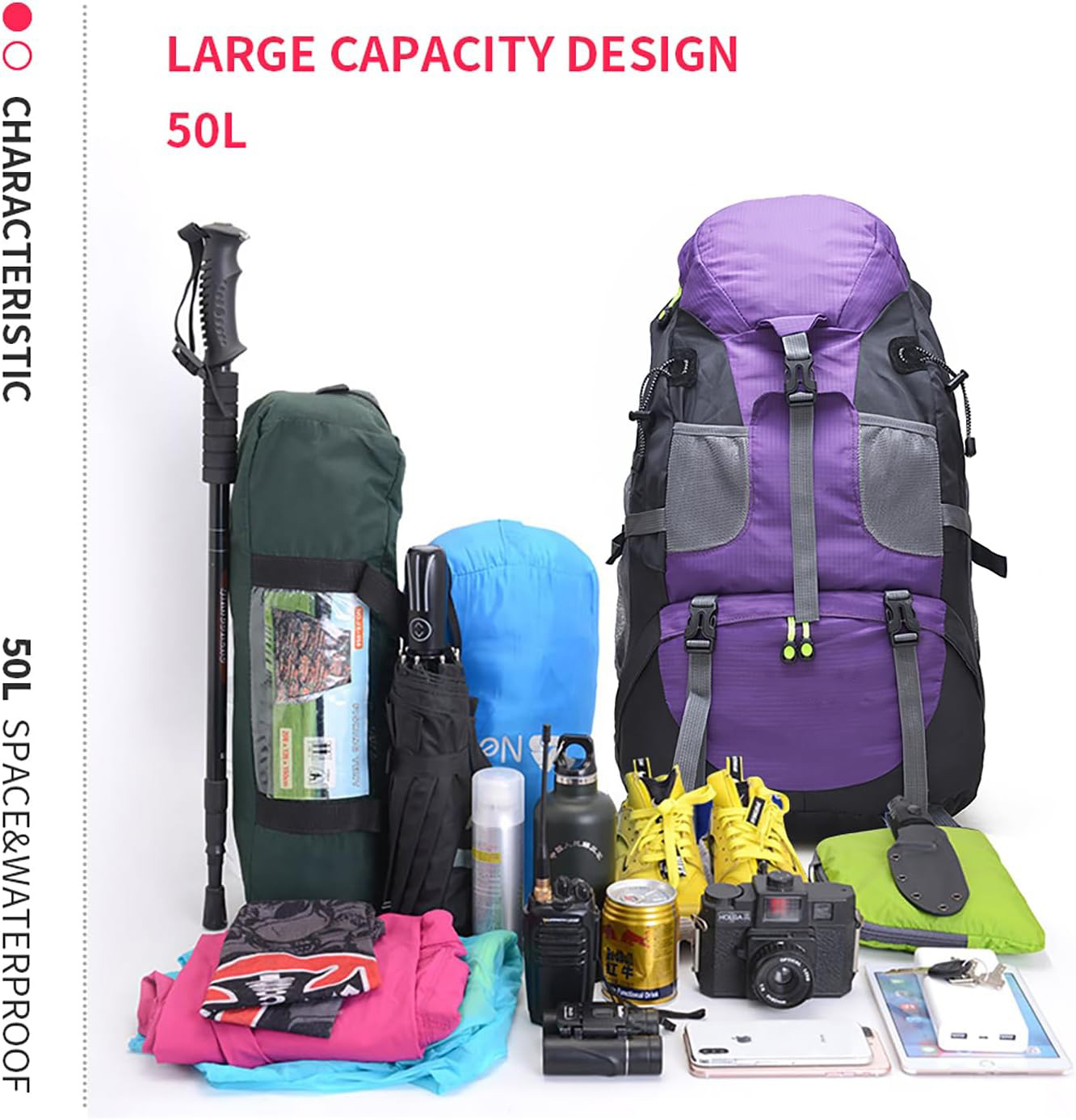 This lightweight outdoor backpack weighs only 1.7 pounds despite its large 50L capacity. It features a spacious main compartment, numerous pouches, and secure zipper closures to prevent items from falling out. Additionally, it includes two side pockets for carrying water bottles and meets size requirements for most airlines, making it suitable for 3-4 day trips.