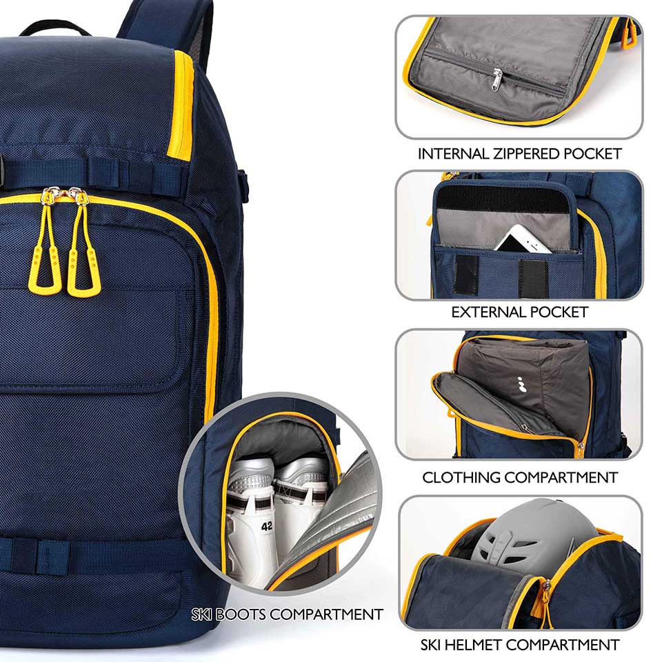 50L Ski Boot Travel Backpack Ski Boot Bag for Ski Helmet Goggles Gloves Skis Snowboard & Accessories