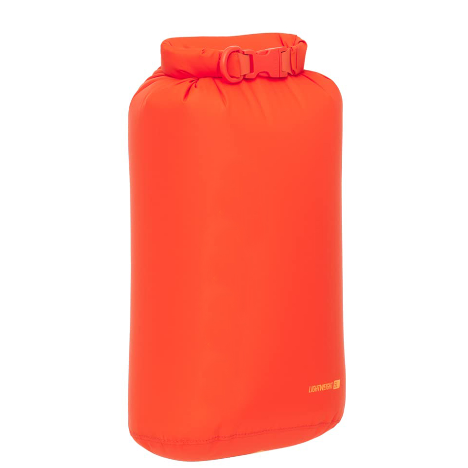 The lightweight 5-liter roll-top dry bag is a classic, versatile dry storage and organizing option for backpacking, hiking, camping, sea kayaking, ski touring, cycling, and travel Manufactured from lightweight PU-coated 70D nylon with a DWR finish; secure roll-top closure; interior polyurethane coating is white to improve visibility into bag contents buckle can be replaced in seconds 5 liters (with closure rolled three times)