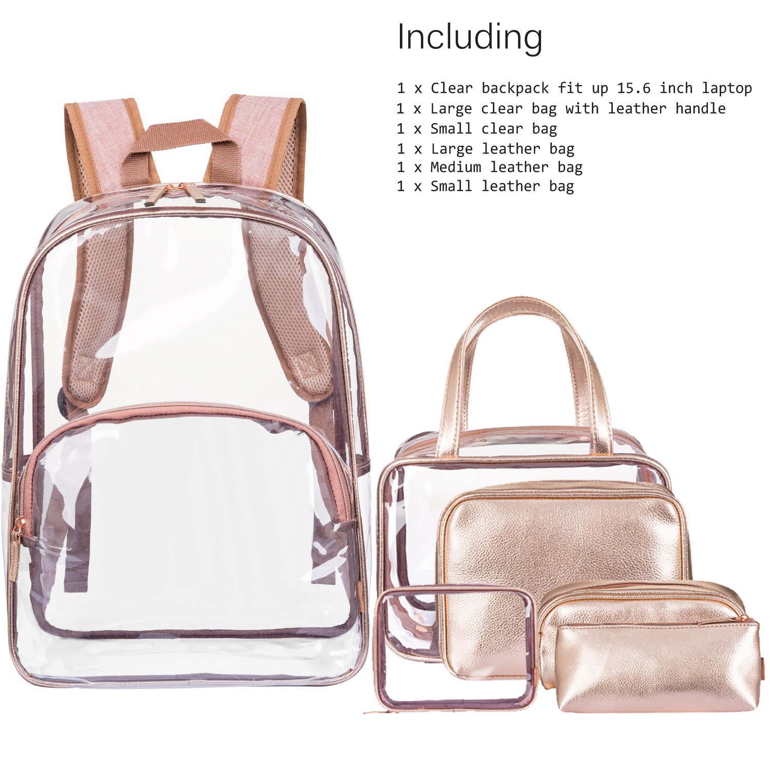 6 in 1 Clear Backpack with Cosmetic Bag&Case Clear Transparent PVC School Backpack Portable Travel Toiletry Bag Makeup Organizer