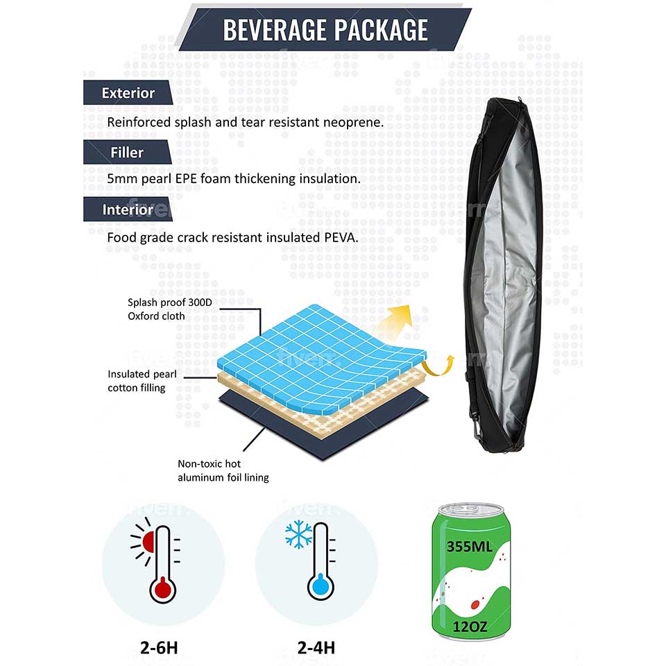 Material:Nylon Use:CANS Feature:Waterproof, insulated, Thermal Pattern Type:Customized Color:Customized Size:25 x 16 x30cm OEM/ODM:Accepable Usage:Outdoor Warranty:1 year against defect of materials and manufacturing