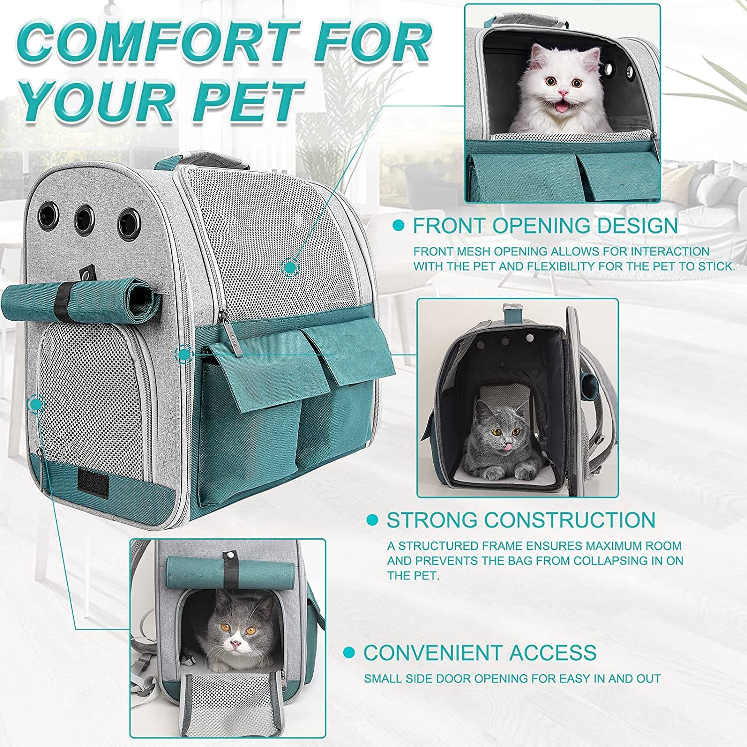 • Whether you need a cat backpack carrier or a dog backpack carrier, this pet carrier backpack will keep your fur friend safely inside, allowing you to focus on managing your trip. • The leash tether could be attached to your pet to prevent escape if you want to leave the top open for your pet to stick their head out. • The high grade scratch-resistant polyester and reinforced metal zippers serve as another barrier to prevent escape, so give your pet ultimate protection.