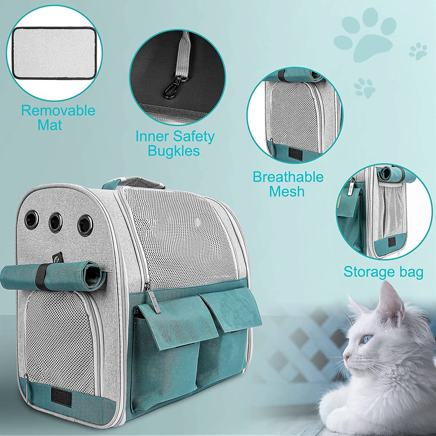 * 【High-quality and safer】 This cat travel carrier backpack is made of sturdy PU material to prevent pets from tearing the backpack to escaping or being injured. Equipped with a spring hook and a collar to double guarantees the safety of your cute pets, no more worries about cat/dog jumping out and running away.