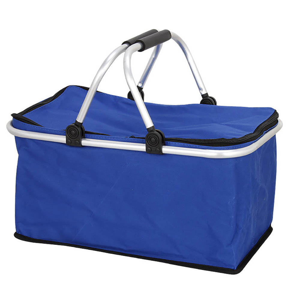 Outdoor outing Aluminum alloy folding basket shopping basket portable picnic basket portable fast food basket Oxford cloth storage basket