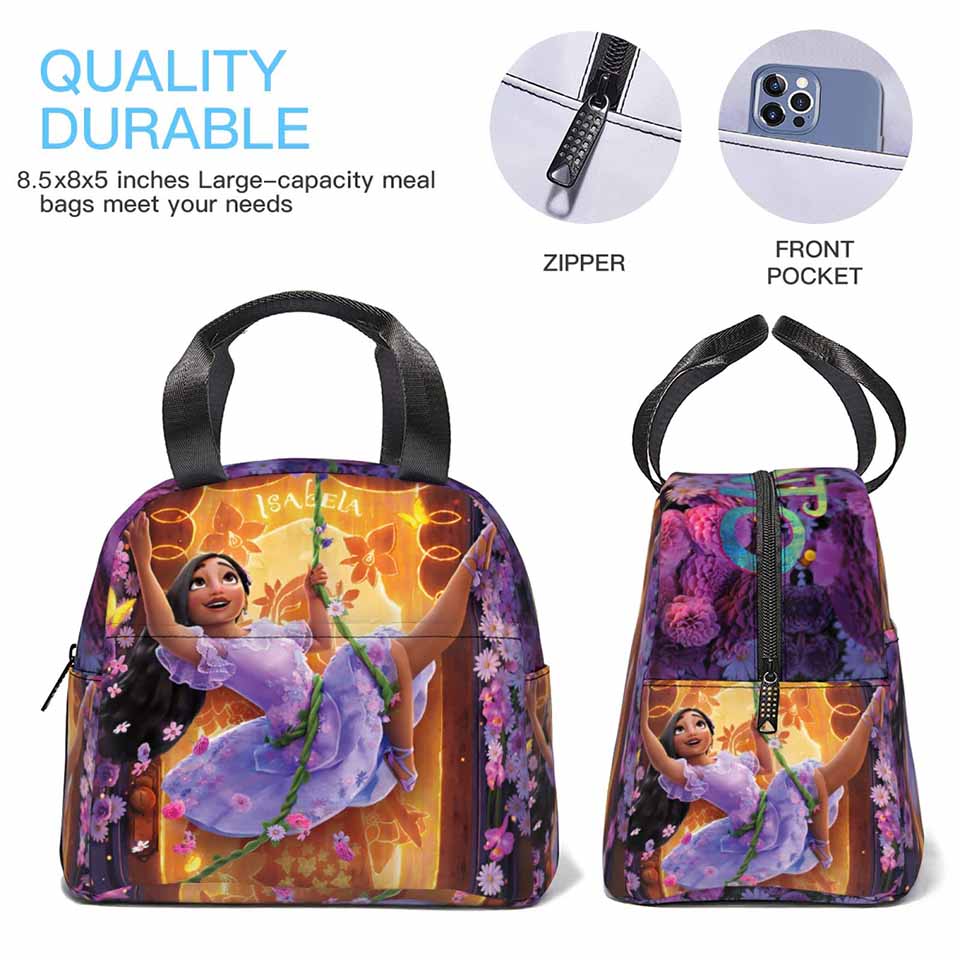 * Size: This Lunch Bag Size 8 x 5 x 8.5 Inch, Tote Bag Design, Smooth Zipper, A Main Pocket And A Front Pocket. The Spacious Lunch Tote Bag Can Easily Hold All Your Lunch Boxes, Sandwiches, Snacks, Drinks, Fruits, Vegetables And More.
