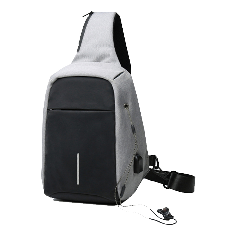 Anti-theft USB port Chest Bag Men's Crossbody Bag with waterproof fabric and 3 color for choosing