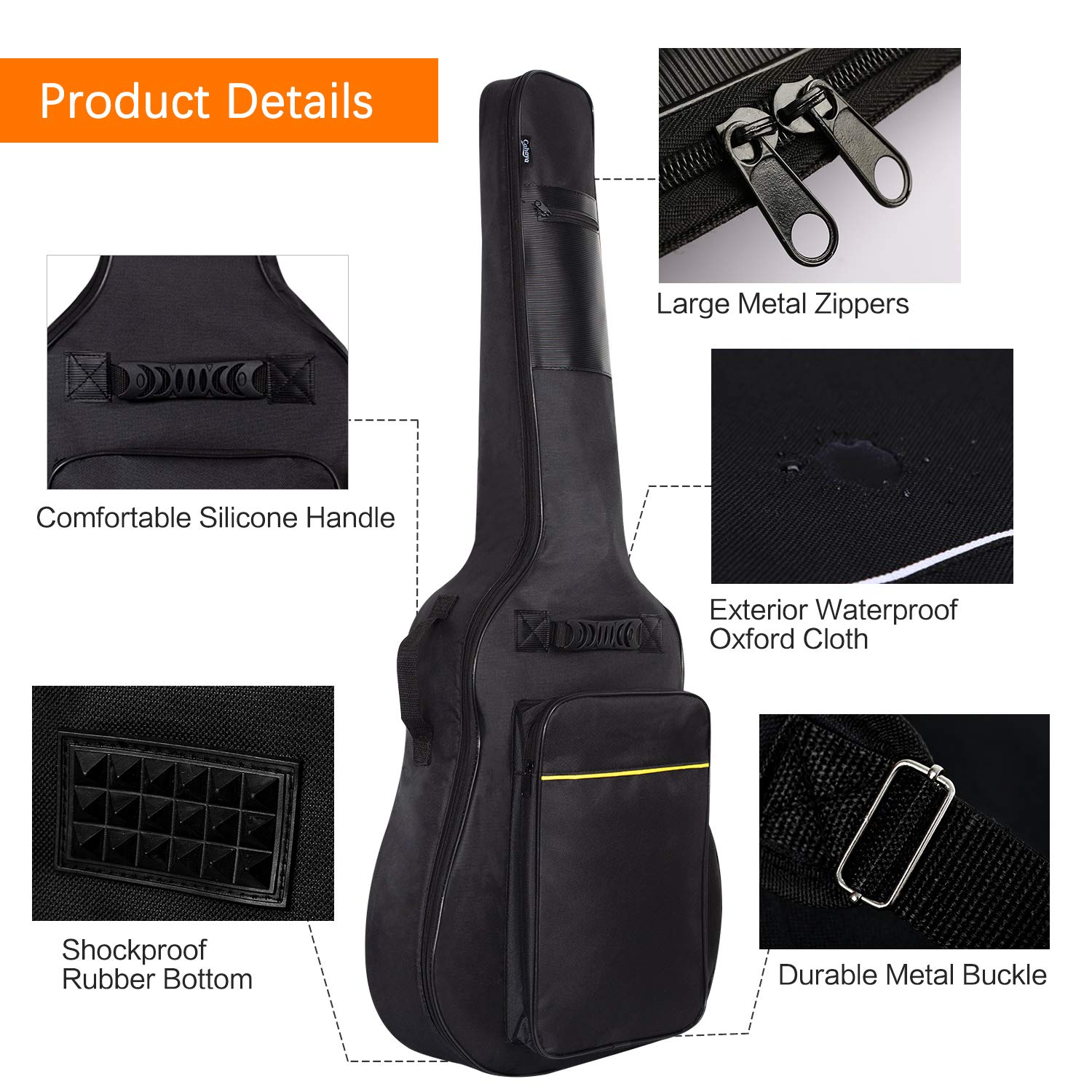 Here is an awesome hashtag#guitarbag for myself guitar. It is convenient for you to put on your back or carry with silicon handle by the side. Inside is well padded with thick sponge around the thickness of 5 quarters and high quality lining.