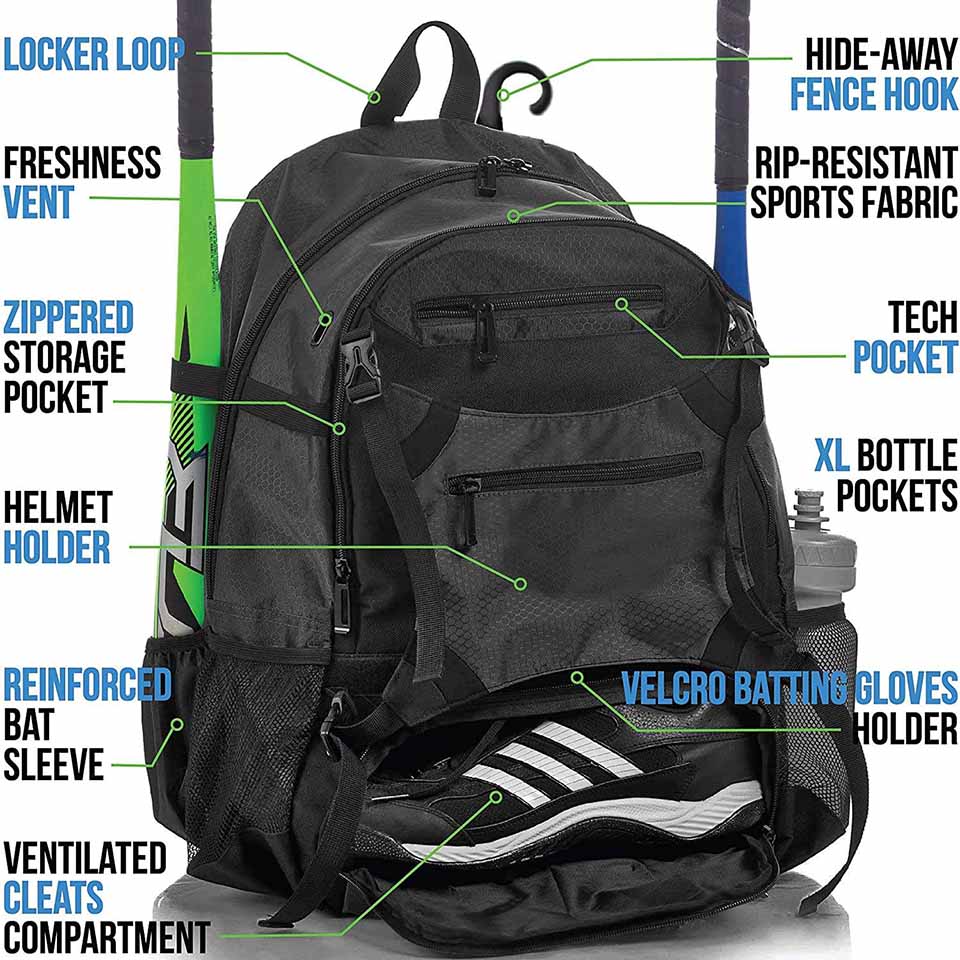 Baseball Backpack with External Helmet Holder for Baseball, T-Ball & Softball Equipment & Gear for Youth and Adults