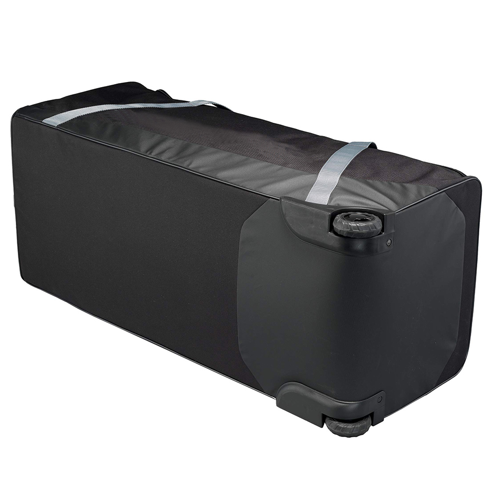 The sturdy base protects the bottom of the bag with heavy-duty in-line wheels for easy transportation to and from the site Capacity: 94 x 40 x 37.5 cm (L x W x H) |