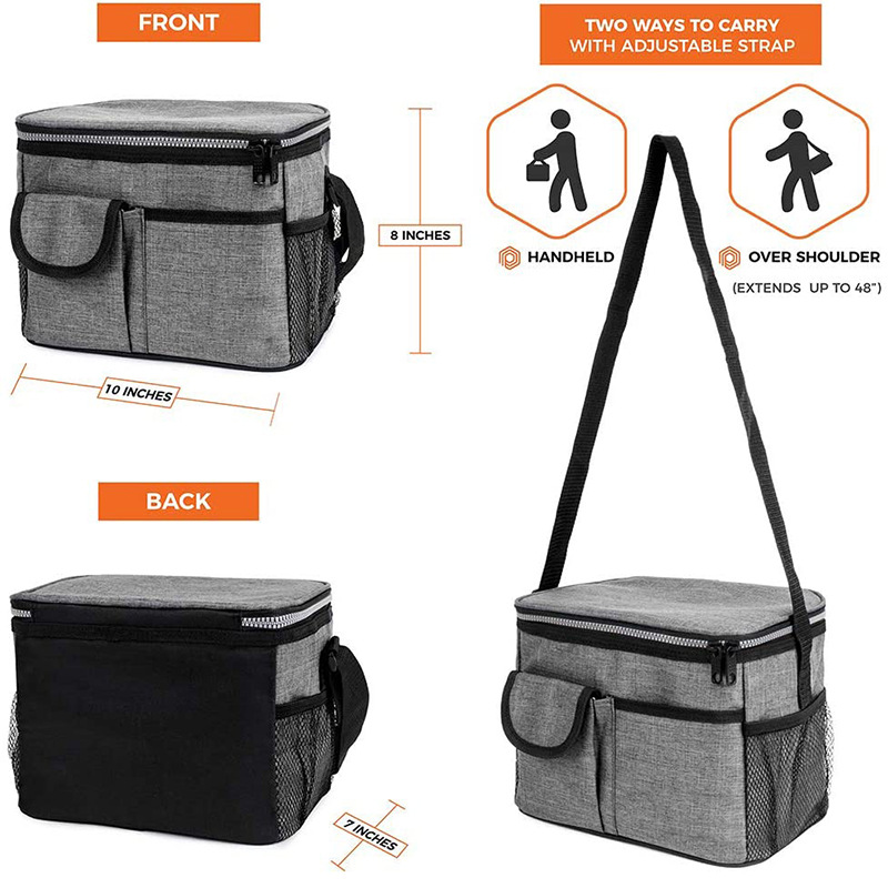 Product name:Cooler Bag Usage:Food Storage Color:Grey Size:8.6" x 5.9" x 10.6"