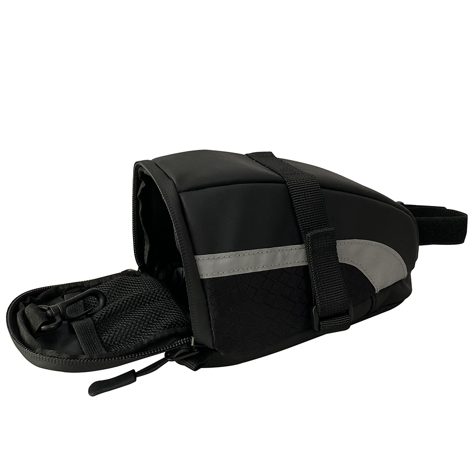 Easy access, wide zipper opening, large zipper opening designed for rider convenience. Ideal place for cell phones, wallets, tire tools, mini pumps, bike locks, and more. Always safety first! High-quality reflective trim ensures night riding safety. The tail light hanger allows you to mount a bike light on the rear for extra safety while riding. Simple to install, this saddle bag features a strap-on mount that securely attaches under the bike seat and to the seat post. Designed with adjustable Velcro straps, it's easy to attach or detach the bag to your bike.