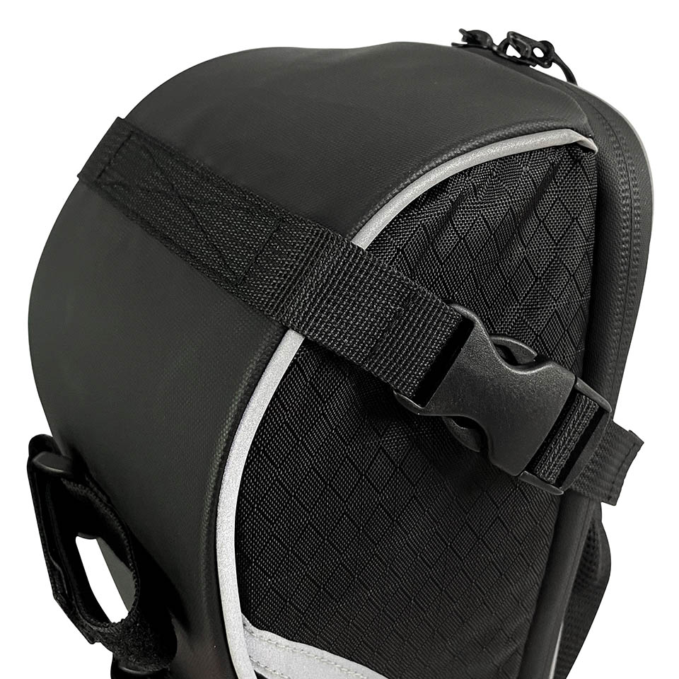 Practical and Stable: Streamlined design for a stylish look. Mounts with velcro straps to secure bike poles at four points. It is in a triangular state, stable and firm, and does not shake when riding. LARGE STORAGE SPACE: The side pockets and compartments inside the main bag are designed to classify and store items for easy storage and access. Easily organize water bottles, wallets, gloves, cell phones, and more. Detailed design: Silver reflective logo to ensure safe riding at night. The elastic water bottle mesh pocket and top adjustable drawstring keep water bottles from falling out. Universal: This bike seat bag is suitable for folding bikes, mountain bikes, road bikes, and other models, and is suitable for commuting, cycling, and different scenarios.