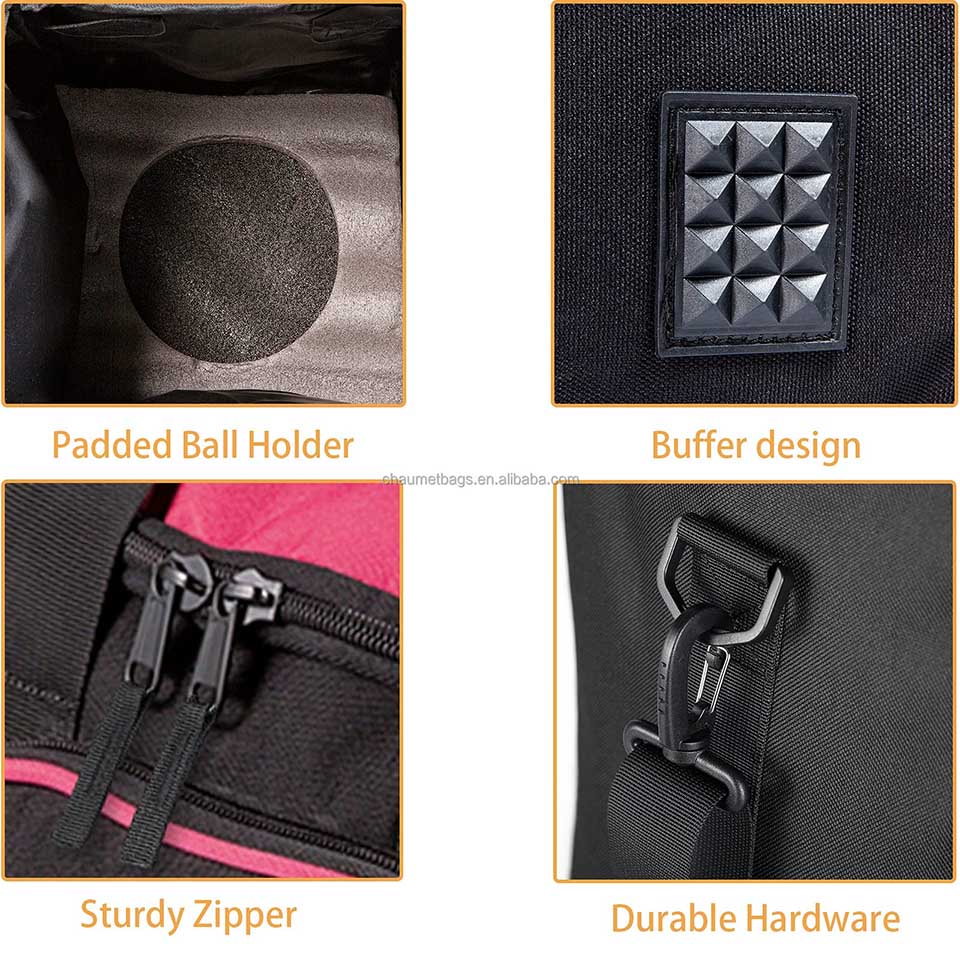 Essential details Place of Origin: Fujian, China Brand Name: Chaumetbag Feature: Waterproof Application: Sport Item Type: Ball Backpack Closure Type: Zipper Shape: Quadrate Material: Nylon Pattern: Solid Capacity: 20 Litre Size: 13"L x 7.87"W x 19.69"H Color: Customized Certificates: BSCI,Sedex,TUV,ISO9001 Sample time: 5-7 Days Sample charges: USD60 Warranty: 1 year against defect of materials and manufacturing OEM/ODM: Acceptable Product name: Ball Backpack MOQ: 500pcs