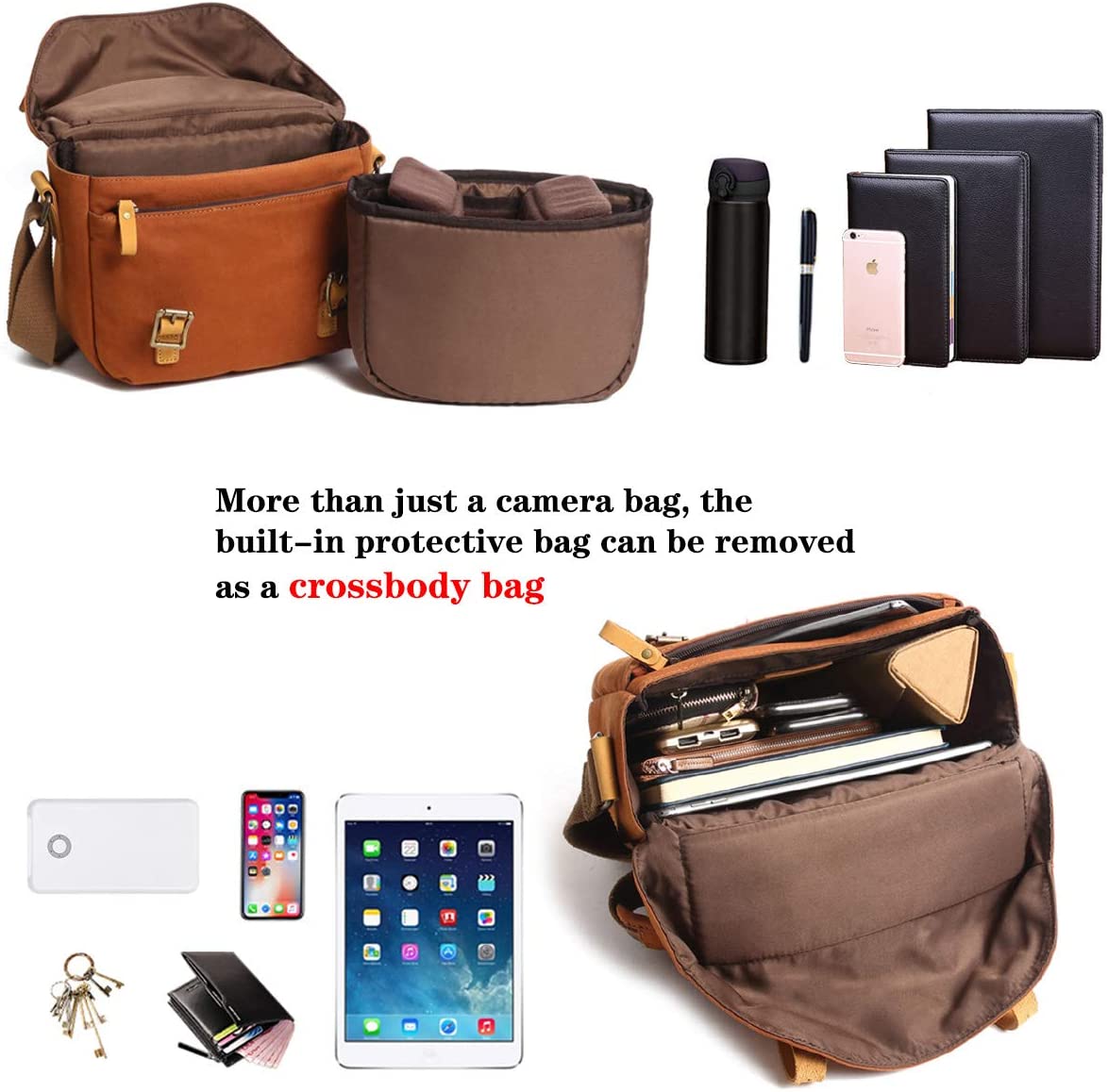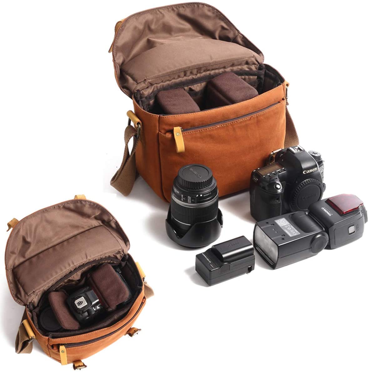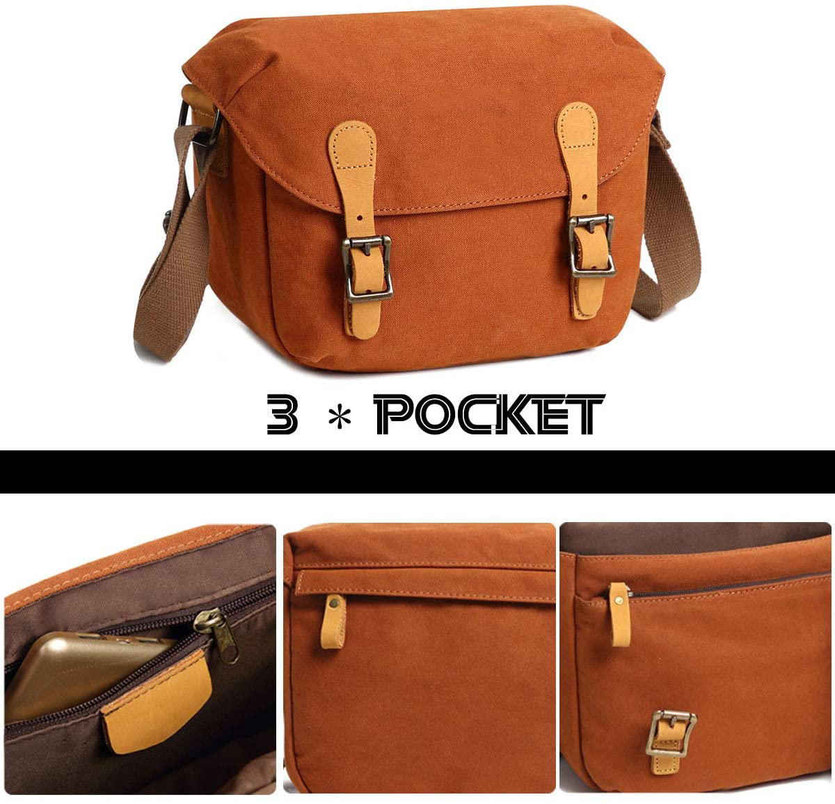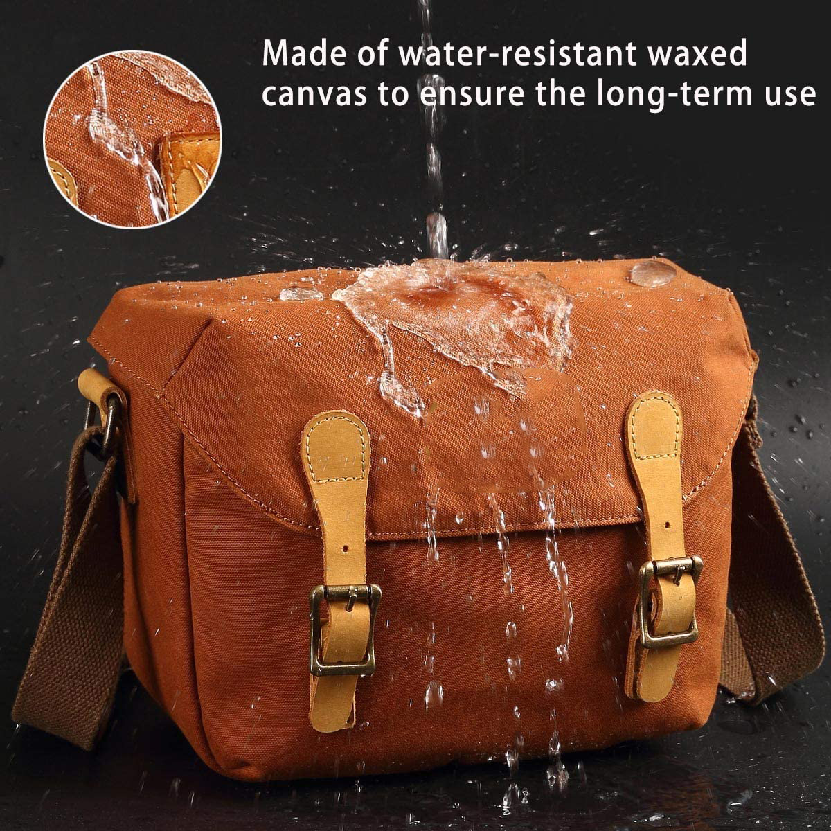 [Water Resistant]We use durable high-density waterproof wax canvas to make the surface, ensuring that the camera bag is waterproof.The buckle is 2 strong leather buckles instead of the fragile magnetic buckle.