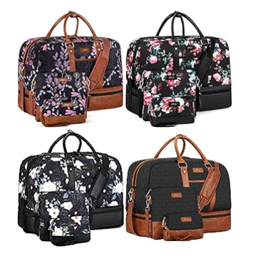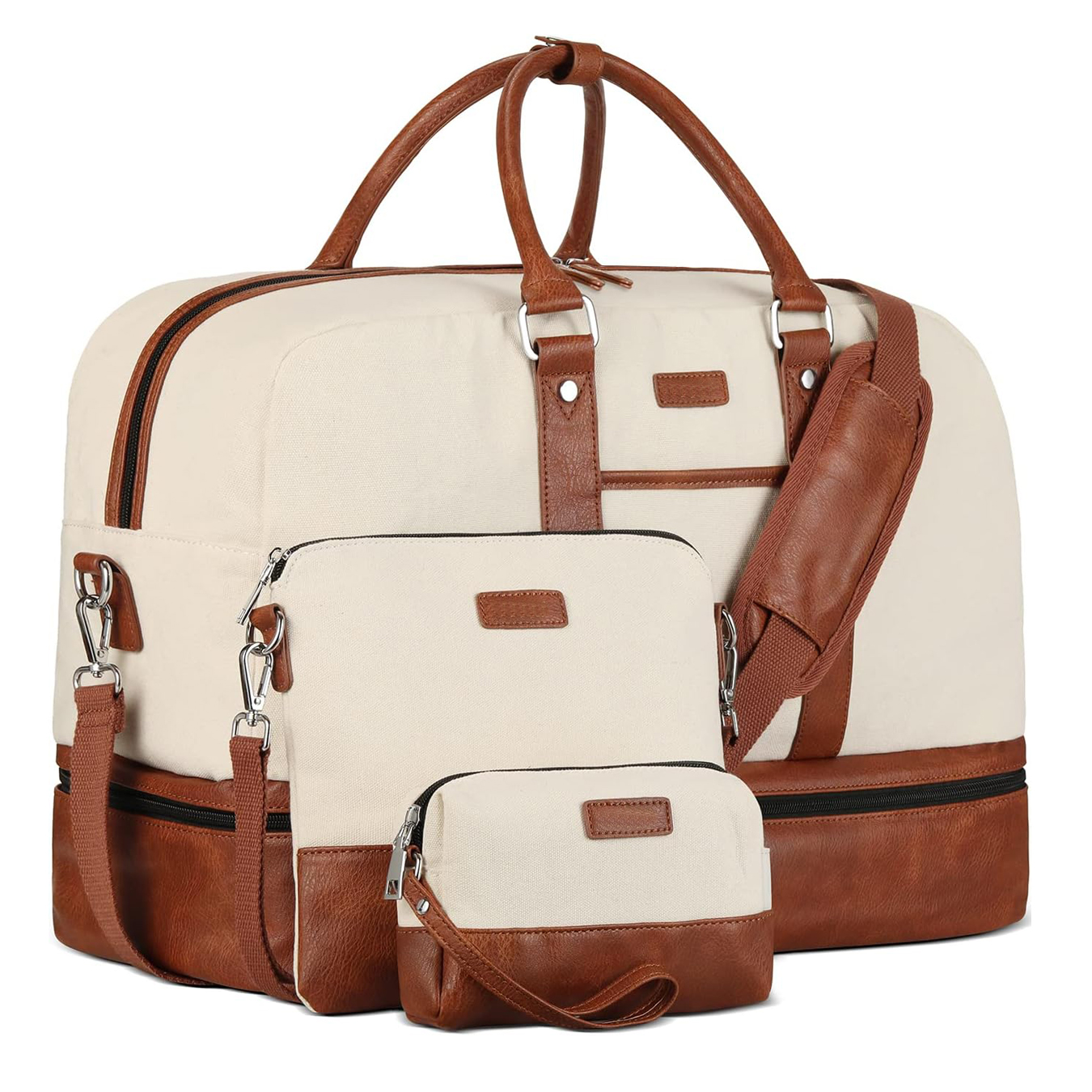 The 3pcs set weekend overnight bag design (travel duffel + crossbody bag + cosmetic bag). |