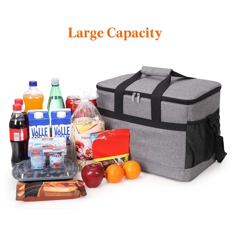 Brand Name: chaumetbag Material: Aluminum Foil, Aluminum Foil Type: Thermal Use: Food Feature: Waterproof, insulated, Thermal Pattern Type: customized product name: Insulated Cooler Bag size: 17.2 x 12.95 x 4.17 inches Logo: customized Colors: grey Usage: food Sample time: 15 days Warranty: 1 year against defect of materials and manufacturing OEM/ODM: Acceptable Capacity: 30L