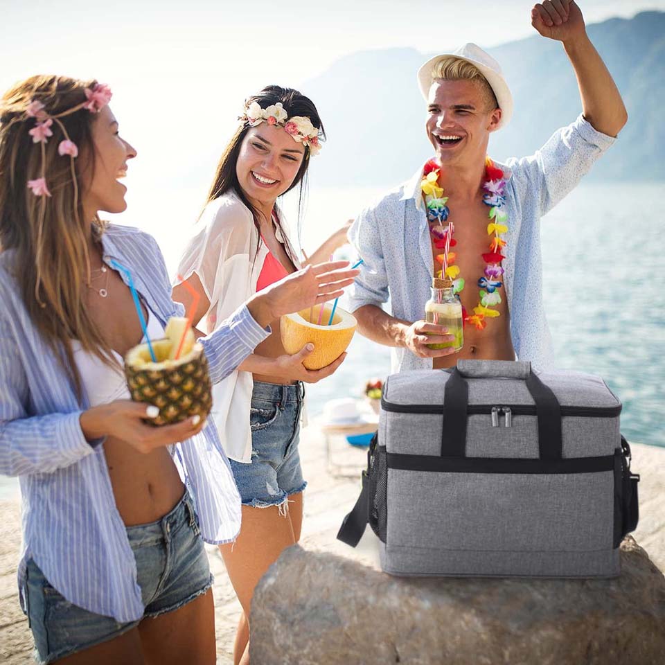 Brand Name: chaumetbag Material: Polyester Type: insulated Use: Food Feature: Waterproof, insulated, Thermal Pattern Type: customized Product name: cooler bag Color: black,grey Size: 23.7 x 14.5 x 14.2 inches Logo: Customized Capacity: 80L MOQ: 300 Pcs Usage: Carry Food With Cup Holders Weight: 0.58kg Sample: 5-7 Days Send OEM/ODM: Accepable