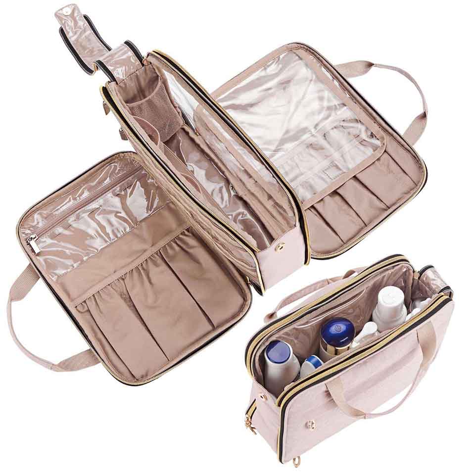 * LARGE CAPABILITY-12 x 4 x 9 inches. Main compartment with several pockets keep your skin-care products, cosmetics, lotion,shampoo, conditioner, toothbrushes and other items you need well-organized for long or short trip.