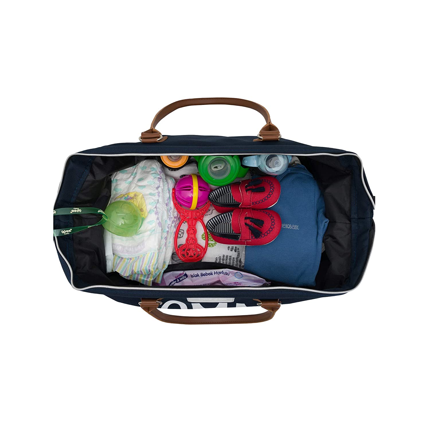 Diaper bag with 1 main pocket and 14 compartments to store everything you'll need for your little one inside, the best part about it is that it's waterproof, easy to clean, durable and lightweight. It will work great for a toddler bag and newborn diaper bag.