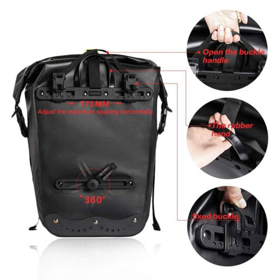 * Extensible Volume: The total volume of this bike pannier is 9L, but it can be extended to 25L large volume - Double side zipper pockets can be opened and extended to 2L capacity, while the second layer zipper on the main pouch can be opened and adds extra volume to the bag