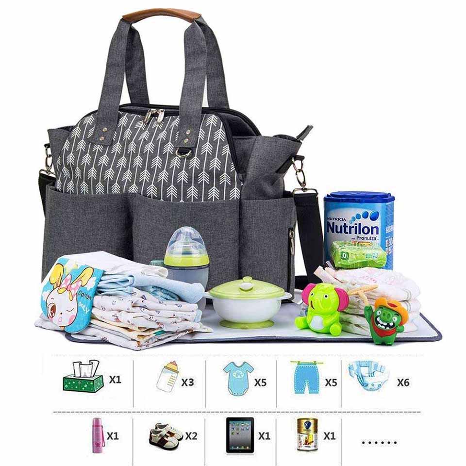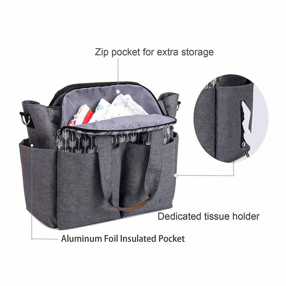 Diaper Bag Tote 5 Piece Set with Wipes Pocket, Dirty Diaper Pouch, Changing Pad Mummy bag