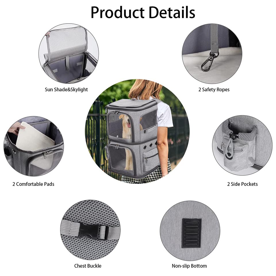 Double-Compaartment Pet Carrier Backpack for Small Cats and Dogs, Cat Travel Crrier for 2 Cats for Traveling/Hiking /Cat