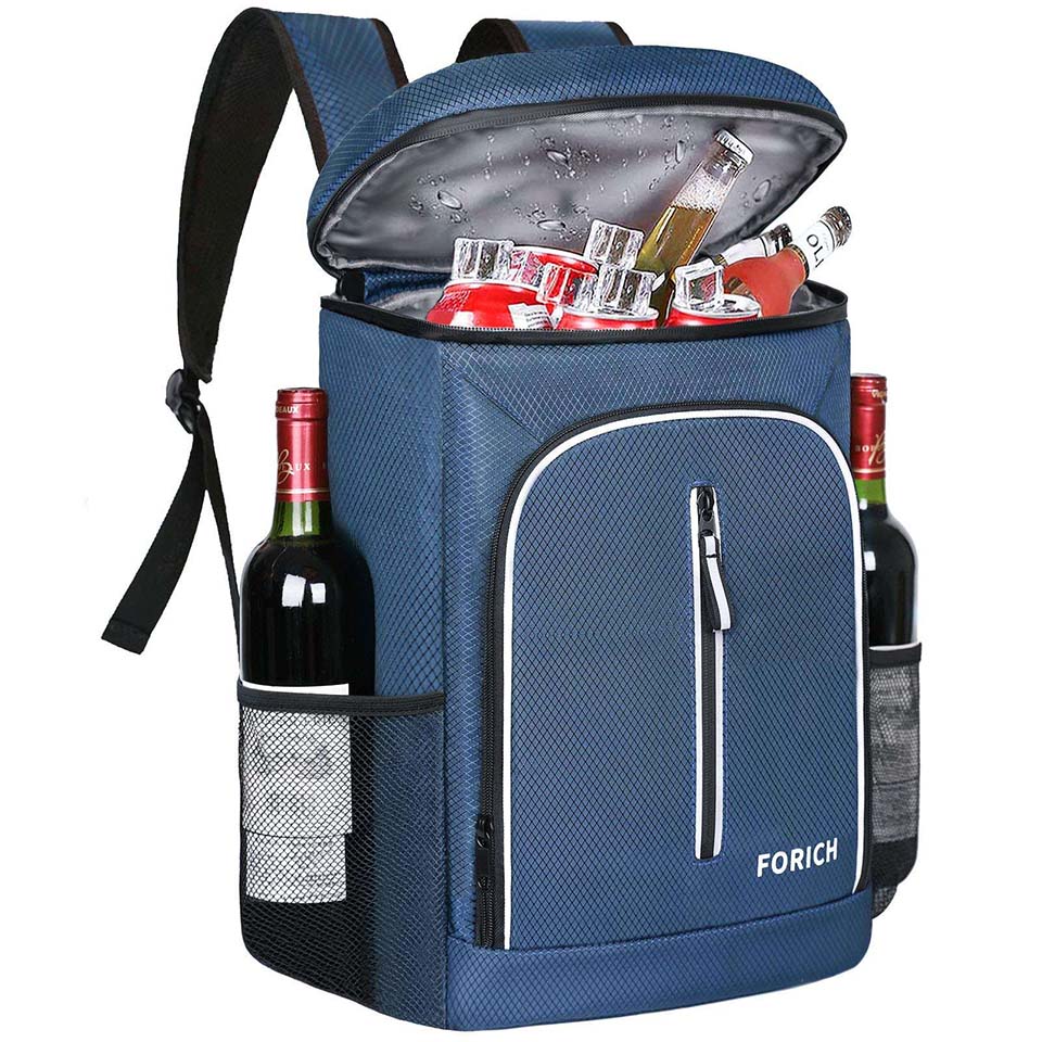 * ROOMY CAPACITY BACKPACK COOLER: 30 cans/30L, measures: 17" x 12" x 8". FORICH cooler backpack is large enough to organize all your necessities, such as drinks, beer, fruit, ice pack, meals, tall beverages, snacks, cellphone and so on. Also it can hold 2 bottles of wine on side pockets. * MULTIPLE POCKETS: 1 main insulated leak proof storage compartment for drinks or food, 1 large zipper pocket in front for dry items and tableware, also it includes a mesh pocket and a zip pocket inside, 1 vertical design front zip pocket for cellphone or small items, and 1 zipper pocket on the lid used to organize snacks, 2 mesh side pockets are perfect for wine or water bottle. There is 1 beer opener on the shoulder strap. * LIGHTWEIGHT & DURABLE & COMFORTABLE: The fashion backpack coolers are made of durable football pattern Oxford fabric, which never rip or scratch but lightweight and waterproof. High quality zipper is easy to pull smoothly. Adjustable shoulder straps and ergonomic design with padded sections on the back offer maximum comfortable. This beautiful color and minimalist style make you younger, stylish and sunny. * MULTI PURPOSE: The soft cooler backpack is suitable for both men and women, and it fit to all your outdoor activities. You can used it as a travel backpack, beach cooler backpack, hiking backpack, camping backpack, picnic backpack, fishing bag, lunch backpack and so on. |