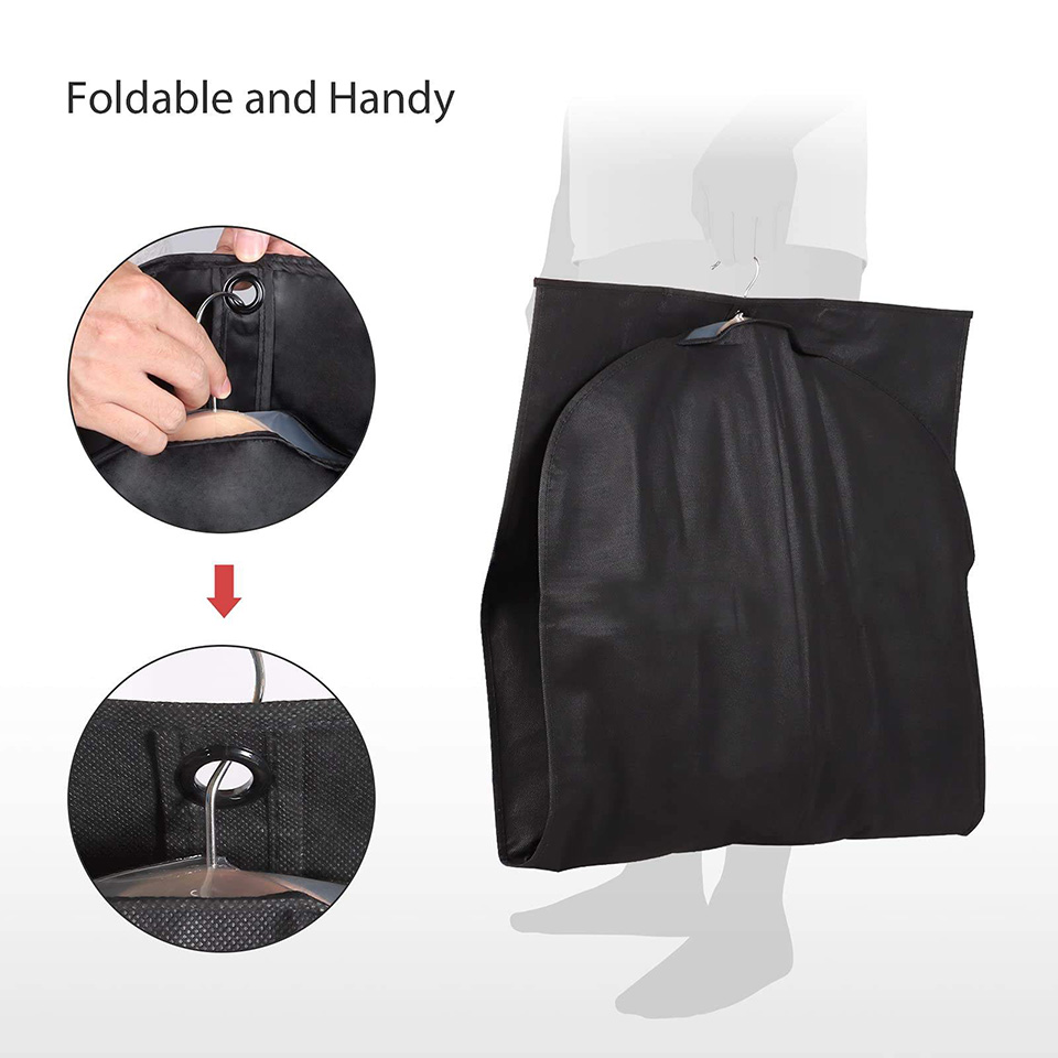 washable and durable. * 【 VISIBLE DESIGN 】 Each hanging garment bag includes a large transparent viewing window, users easily identify the inside clothes without opening the suit bag. This garment storage bags can prevent clothes from wrinkling and make your wardrobe more tidy and comfortable. * 【 LIGHTWEIGHT, FOLDABLE 】 This suit bags are lightweight and easy to fold. Save lots of space. The opening at the top of the garment bag allows for a coat hanger and coat hanger hook can pass through the metal grommet at the bottom of the suit bag for folding storage when you are on a travel. * 【 DURABLE ZIPPER 】 Garment covers come with a durable and smooth zipper. And we added the upper and bottom metal stopper to avoid zipper derailment. * 【 MULTI-PURPOSE BAG 】 Set of 5 clothing garment bags, including 5pcs. Each garment bag could hold 2 suits or 5 t-shirts. The breathable garment cover is perfect for storing your business suits, dresses, coats, jacket and child’s clothes etc, preserving them in excellent condition. |