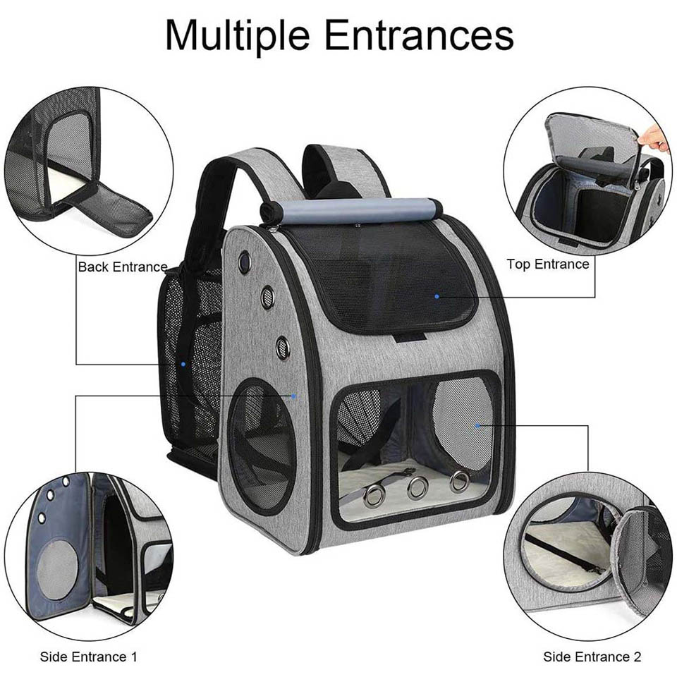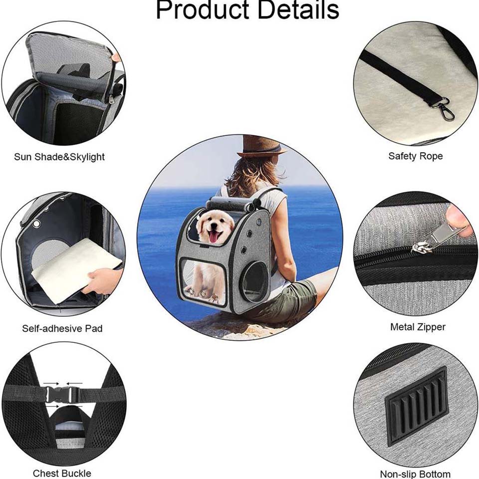 • Whether you need a cat backpack carrier or a dog backpack carrier, this pet carrier backpack will keep your fur friend safely inside, allowing you to focus on managing your trip. • The leash tether could be attached to your pet to prevent escape if you want to leave the top open for your pet to stick their head out. • The high grade scratch-resistant polyester and reinforced metal zippers serve as another barrier to prevent escape, so give your pet ultimate protection.