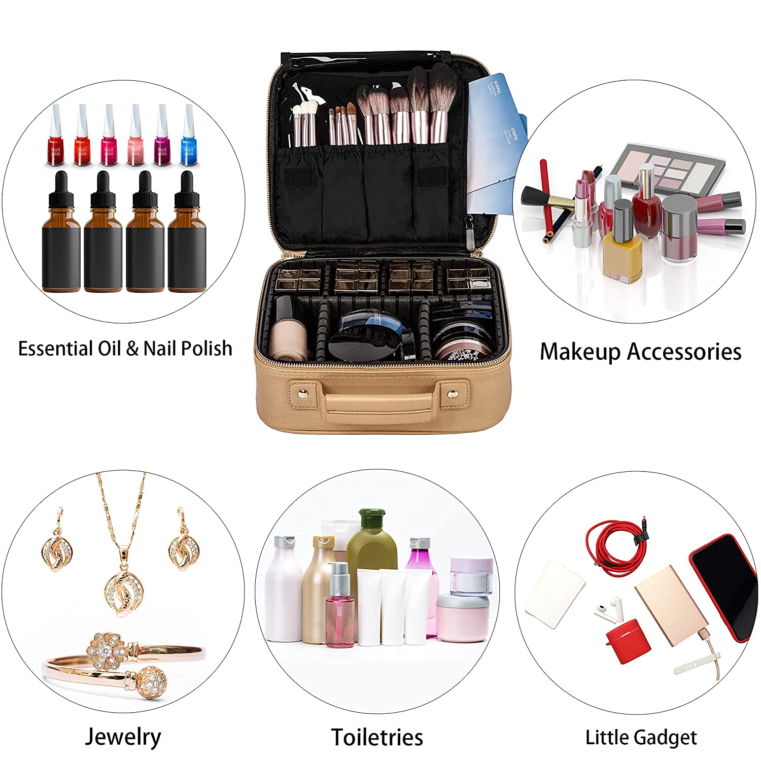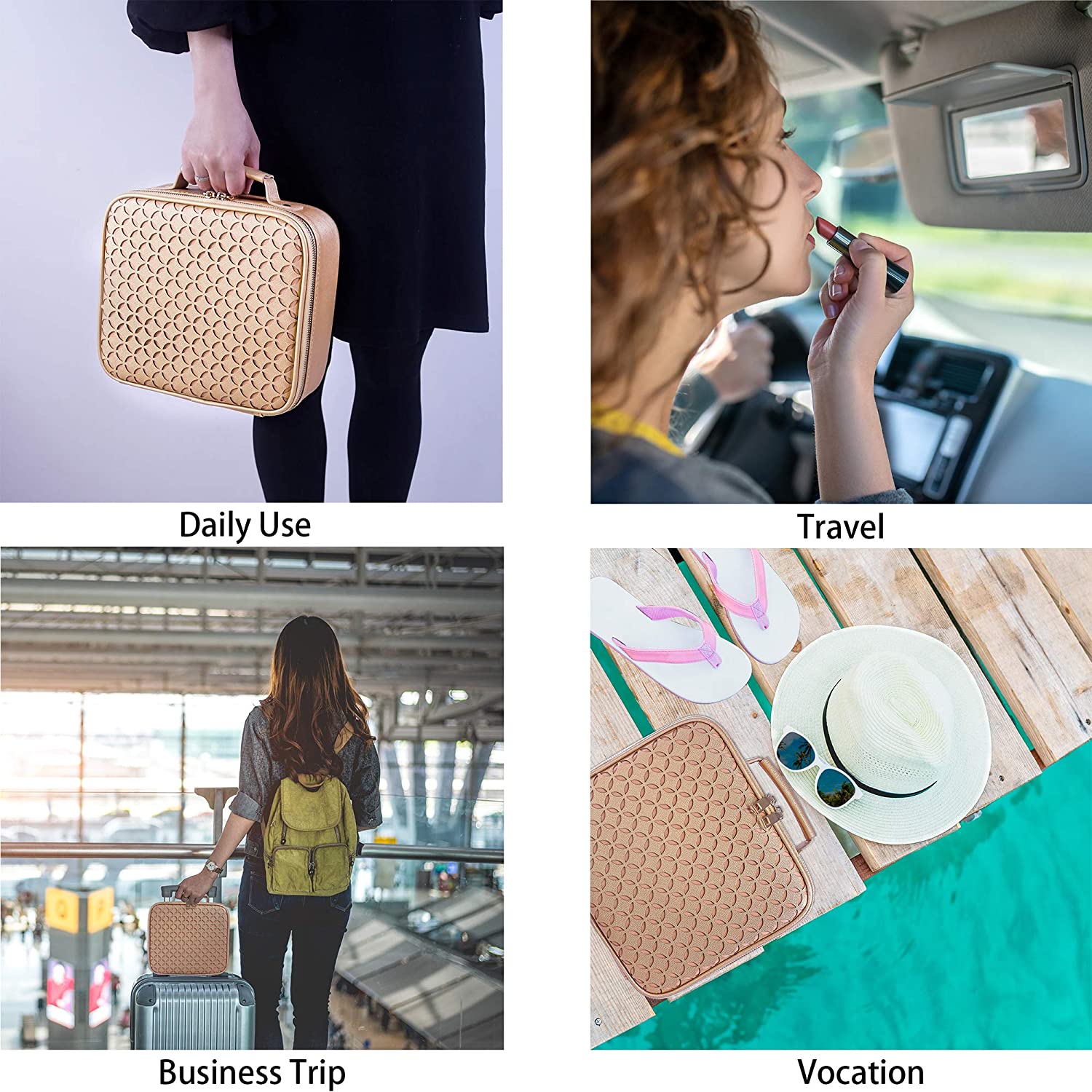 * MULTIFUNCTIONAL MAKEUP BAG: This makeup bag organizer is very versatile, you can storage makeup essentials, skin cares, nail art tools, shaving kits, toiletries, jewelry, electronic accessories and so on. This makeup bags for women can be used as a toiletries bag, a tote bag, an electronic bag or a train case, etc. An awesome gift to your family, friends and colleagues.