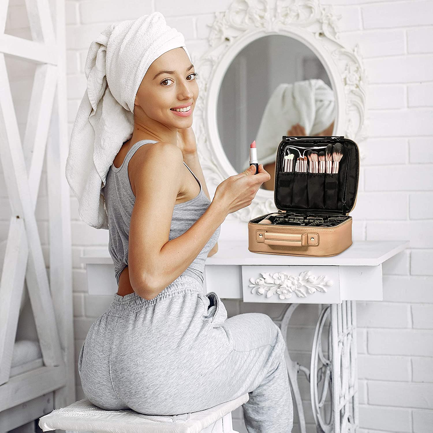 * TRAVEL MAKEUP BAG: This women travel cosmetic bags weighing only 1.77 lb, approx 10.2*9*3.9 inches is easy to pack into your luggage, suitcase, backpack or handheld. Lightweight, ideal for taking anywhere, at any time. Perfect for travel, business trip, performance and home storage. Especially if you do your makeup on the go.