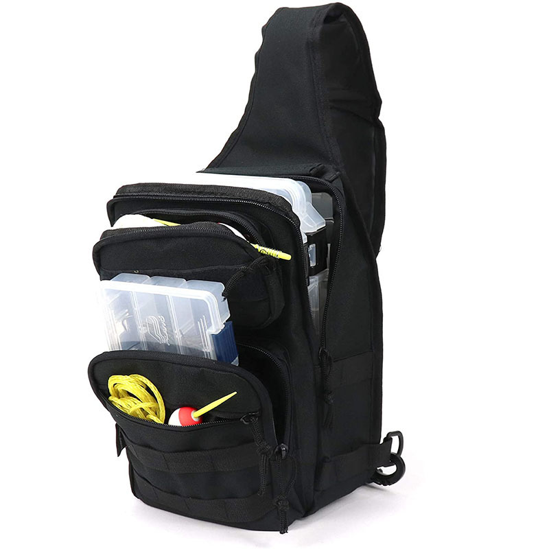 Product name:fishing bag Material:Durable 600D Ballistic Nylon Color:Black Size:12" by 9" by 5" Inch