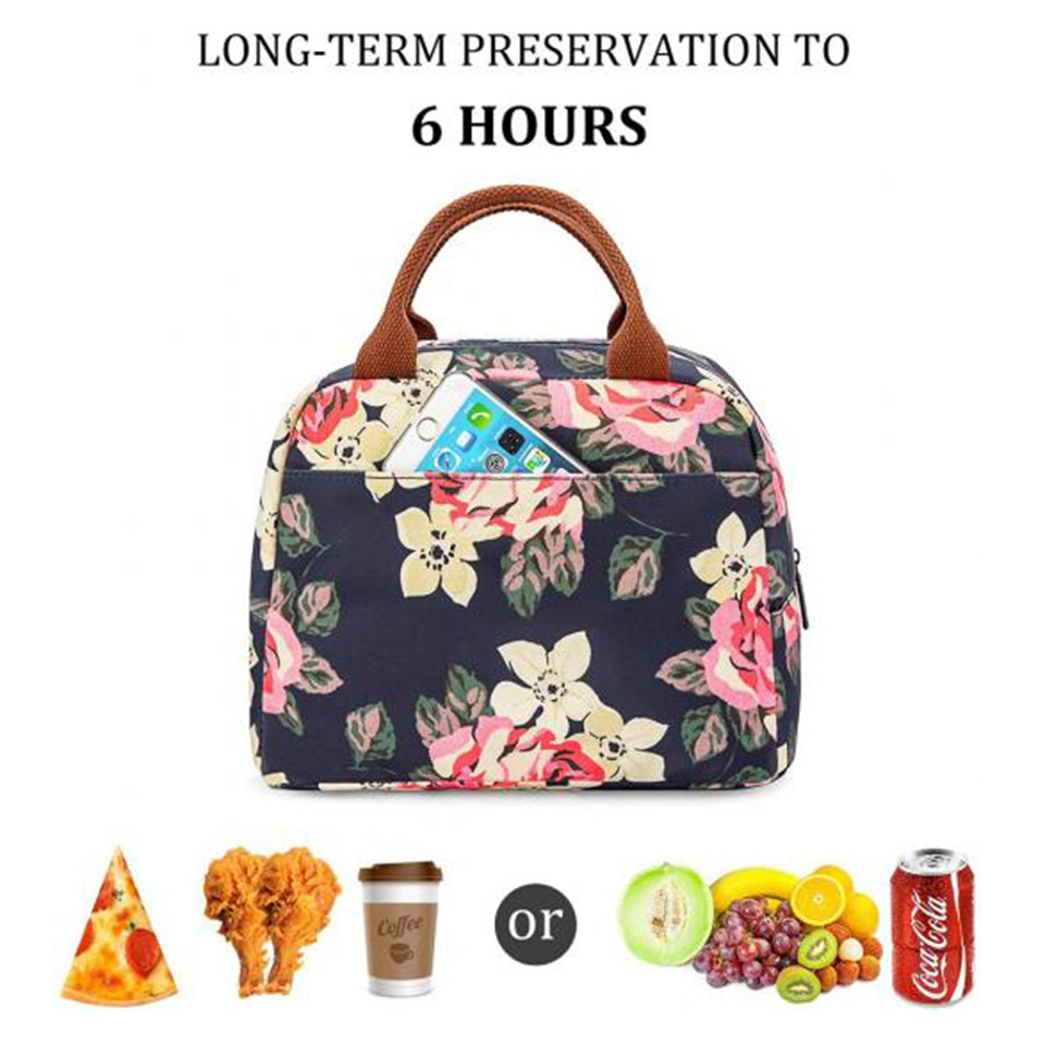 Flower Print Soft Tote Lunch Box Insulated Custom Cooler Bags for Food GirlsFlower Print Soft Tote Lunch Box Insulated Custom Cooler Bags for Food Girls