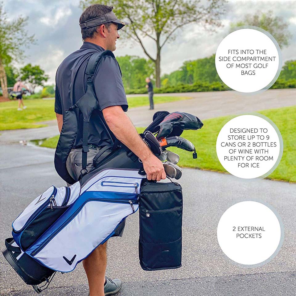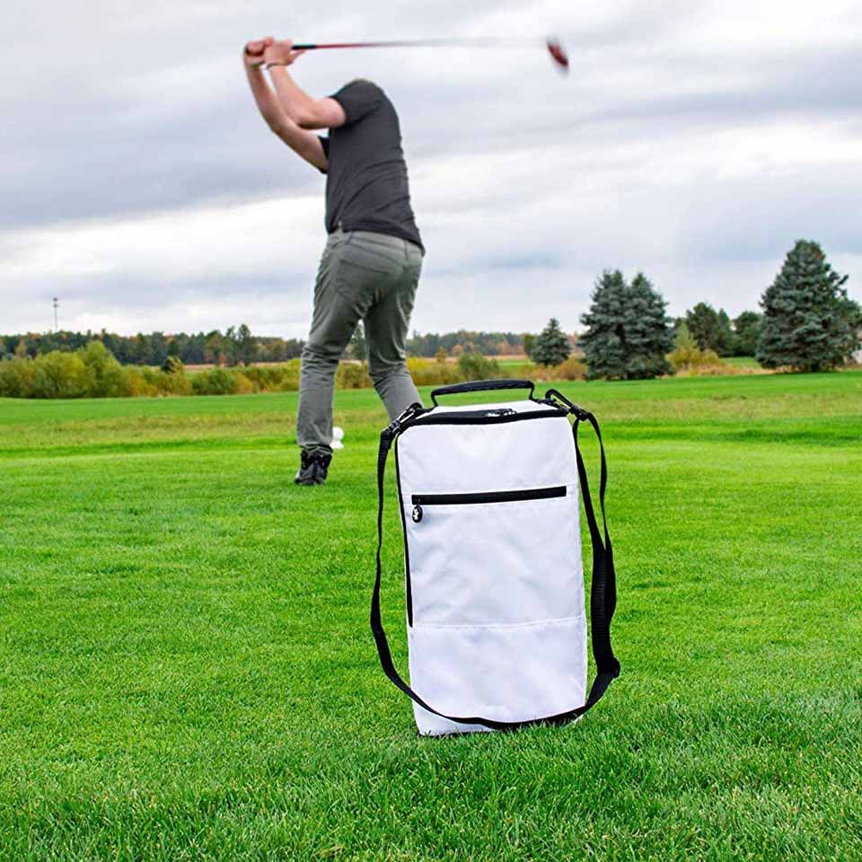 golf Cooler holds 9 Cans or 2 Wine Bottles - Fits in Most Golf Bags - White/Black