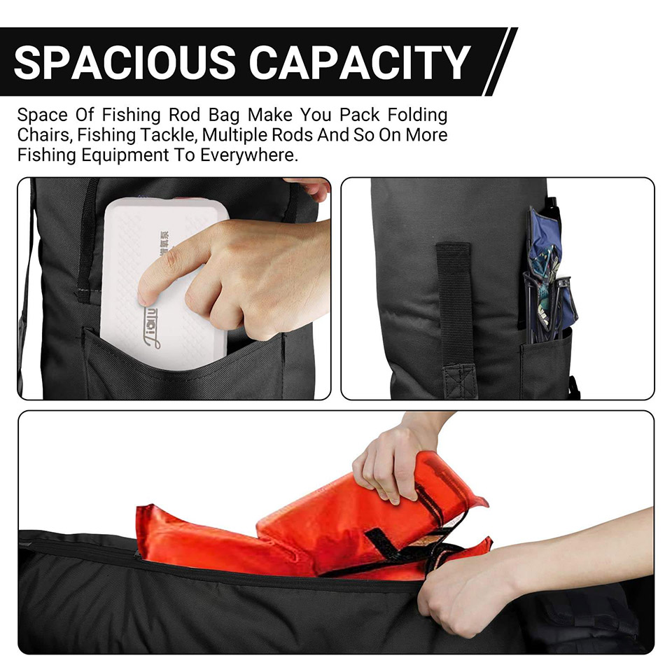 LARGE CAPACITY: Approx122cm*35.5cm. The fishing rod bag holds 5 rods on the