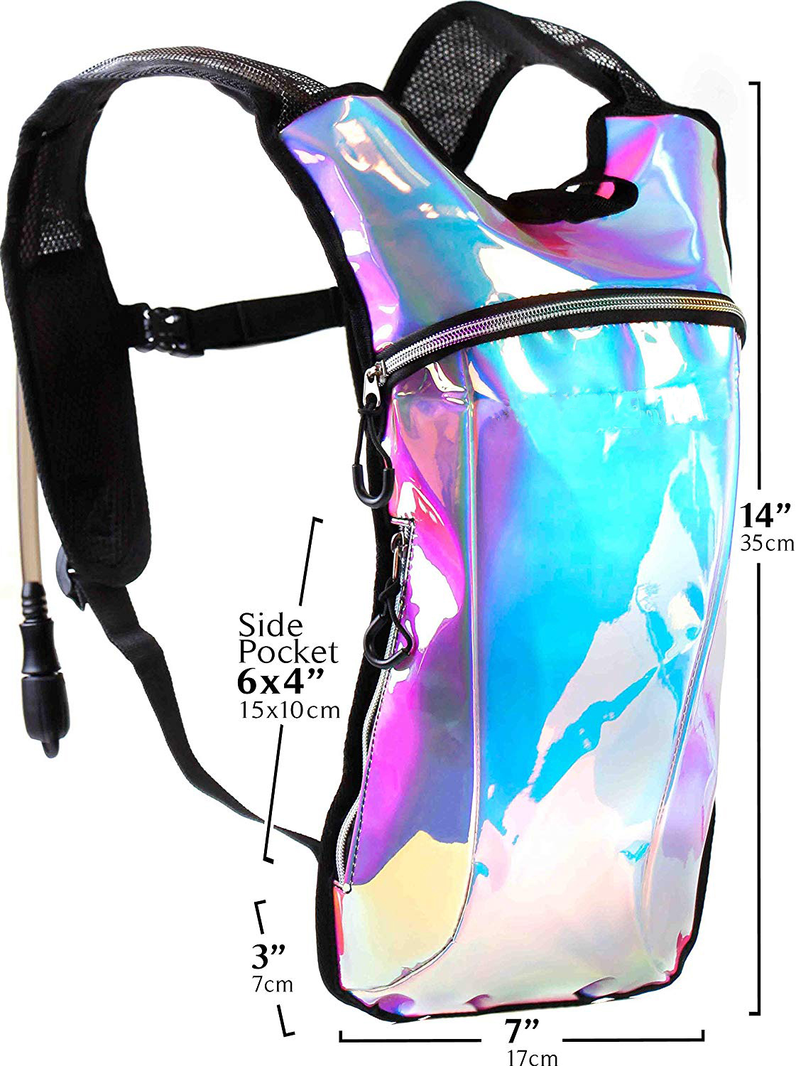 Description:  Holographic Rave Hydration Backpack with 2L Water Bladder