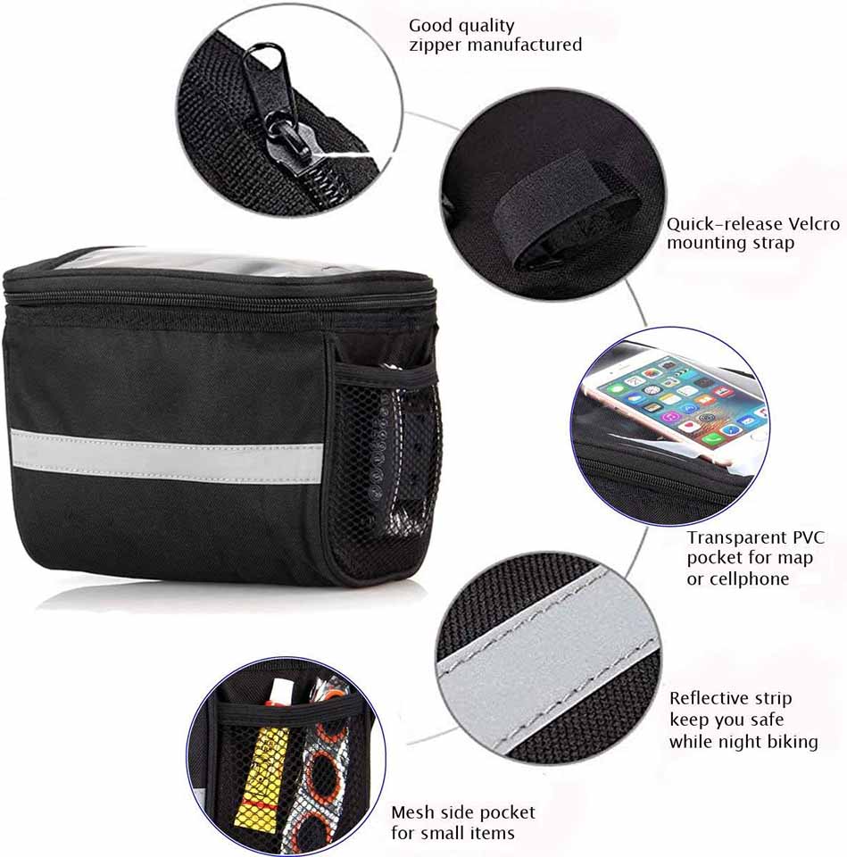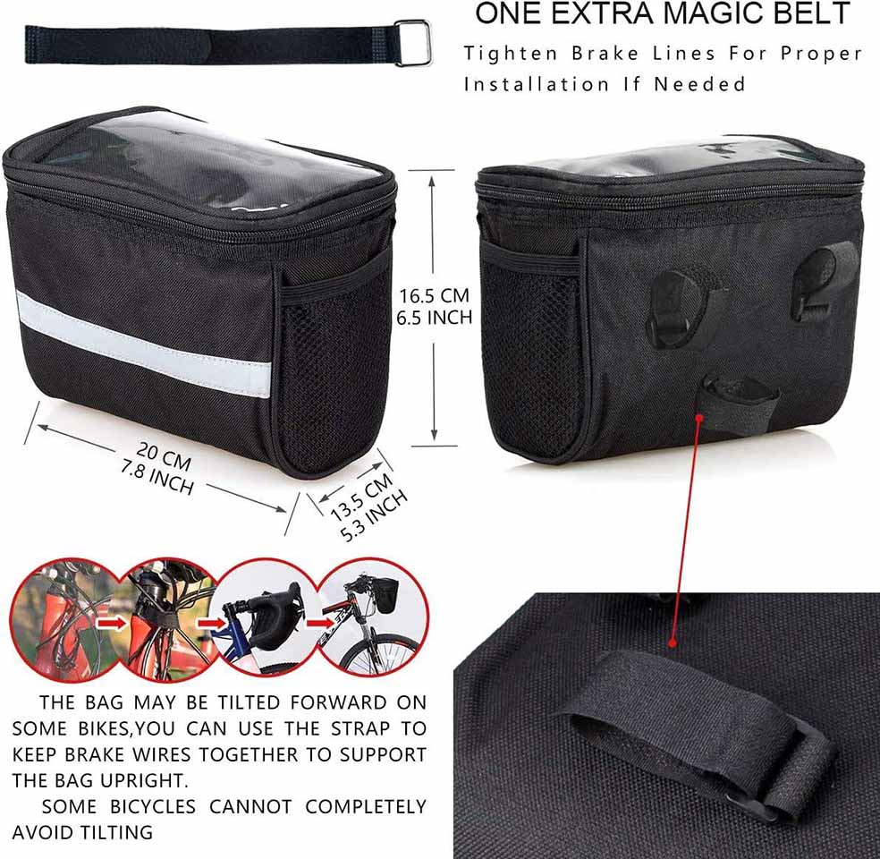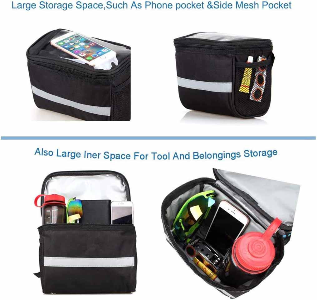 * 【Bike Cooler Bag for a short time】: This bicycle handlebar bag keeps your belongings warm/water cold (for short time use). * 【Highly Reflective Bike Pouch】: There's reflective stripe on the bicycle bag which is highly visible and reflective in any kinds of weather.You can easily be seen by others over 300 feet away.This bike pouch will ensure your safety in the dark. * 【Fit For Straight Handlebar】: Polyester material with insulation coating layer in the bike bag,3 magic straps to fix firmly on the handlebar without shaking and keep handlebar balance. * 【Easy To Install】: There's 3 magic stickers on this bike bag handlebar,help to install it onto your bike handlebar easily and firmly. This makes it easy to fasten , convenient and adjustable. |