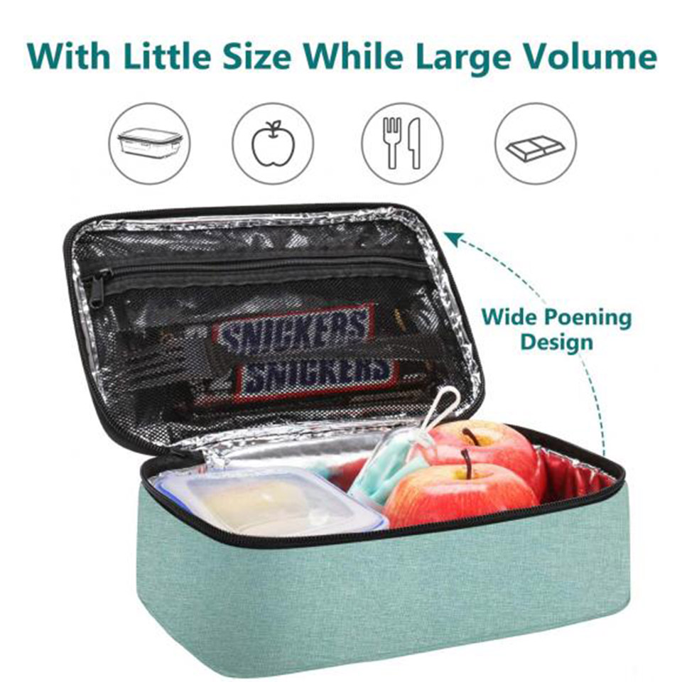* SMALL SIZE: This SMALL lunch bag internal dimensions: 9.61IN x 6.06IN x 2.87IN, which can hold ONE PERSON'S meal, you can put a SMALL lunch box, some snacks, a flatware set and an ice pack in this mini lunch bag, Suitable for work office business travel on-the-go.