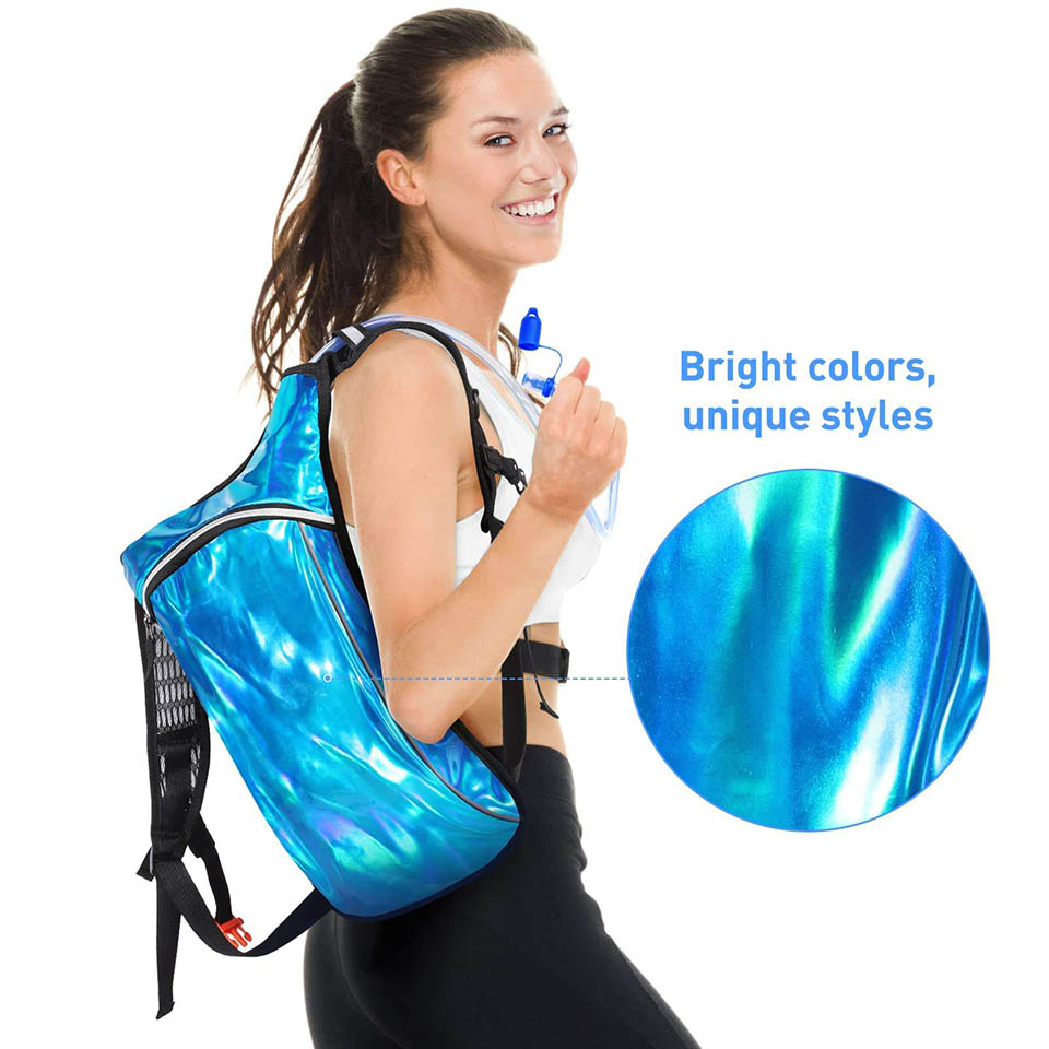 Essential details Place of Origin: Fujian, China Brand Name: Chaumetbag Feature: Waterproof Application: Outdoor Item Type: Hydration Backpack Closure Type: zipper Shape: Quadrate Material: Holographic Leather Pattern: Solid Capacity: 2 Litre Size: 26L*10W*39H cm Color: Customized Certificates: BSCI,Sedex,TUV,ISO9001 Sample time: 5-7 Days Sample charges: USD60 Warranty: 1 year against defect of materials and manufacturing OEM/ODM: Accepable Product name: Hydration Backpack MOQ: 500pcs