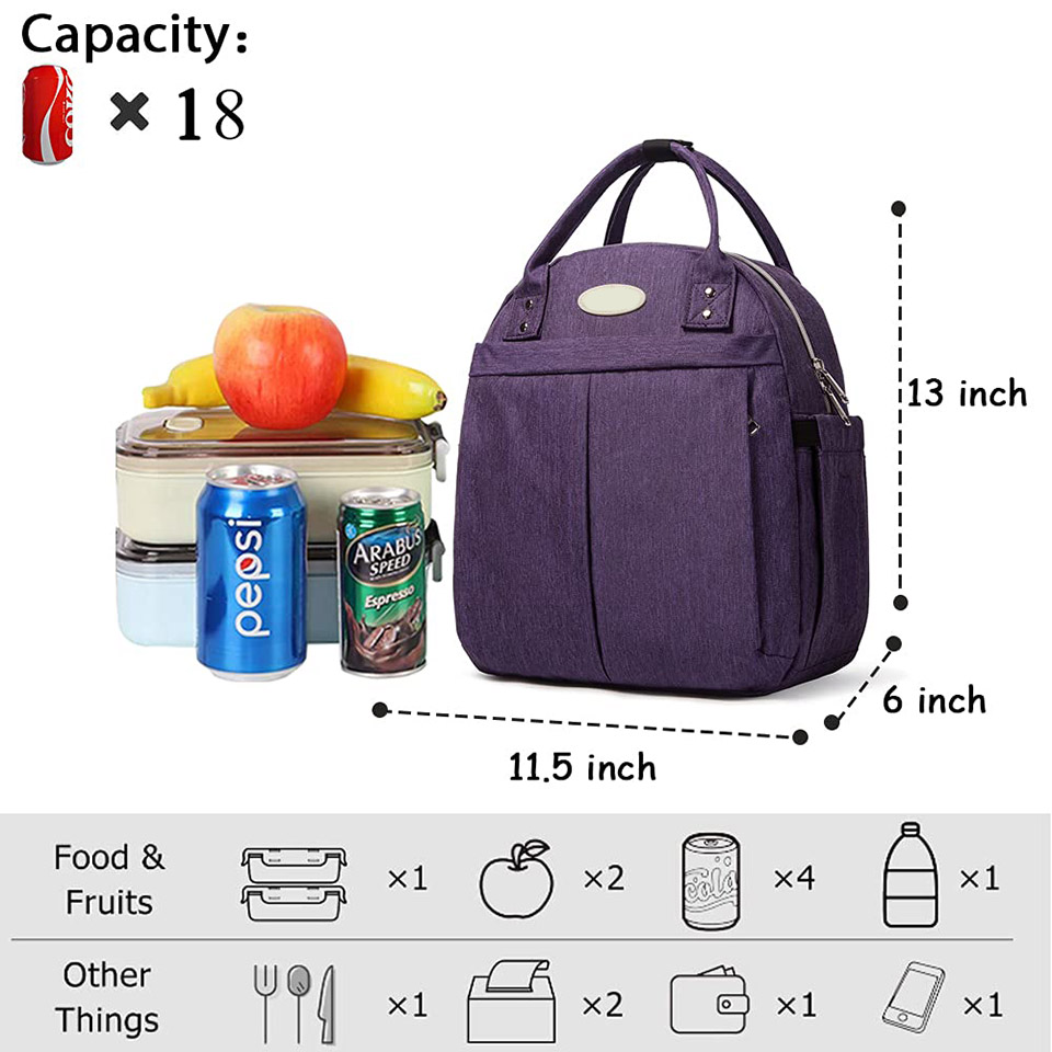 * [BALORAY LUNCH BAG]This lunch bag can be used as lunch bag, picnic bag, sundry bag, suitable for working women.Warm note: Traditional stitching process, so the inside insulated liner is water resistant, but not totally leakproof. * [Standard lunch bag Size]:10x 6.6x 8.5 inch.This lunch bag looks small but with large capacity, it could perfectly fit your lunch box, snacks, and even protein shake bottle.This is the honest feedback from our customers. *[ High Quality Material]:Durable oxford cloth and nontoxic aluminum foil( BPA FREE), perfect to pack your food and lunch containers.We have upgraded Insulation lined interior based on your needs. It will keep your food cold or warm for about 4 hours. ★THERMAL INSULATED: Lining with thick aluminum foil, interior padded with 5mm thicken insulation pearl foam, protect with 300d water resistant matte fabric, lunch box is designed with triple Insulated to keep food stay cold/warm/fresh for hours, perfect for on-the-go meals, picnics, road trips, lunch at the office, the school, the beach and more! ★SPACIOUS & MULTI COMPARTMENTS: Is designed for maximum storage efficiency, 1 main zipped compartment, 1 preposition velcro pocket, 1 practical zip pocket, not only provides you with plenty of space to pack all of your food and snacks you need whole day, as well as pack your keys, cards, phone chargers, napkins, water bottles, utensils, gum or other small stuffs you daily needs. ★THREE CARRYING OPTIONS: reusable lunch box features durable handle and comes with a removable and adjustable shoulder strap which can be adjusted from 18" to 28" when carrying, providing three options to carry: shoulder bag, oblique bag or fashion hand bag. Padded soft strap ensures comfortable carry. Wide opening design makes it convenient to fill and take food. Modern and lightweight design is convenient to be used as your lunch bag, cooler bag, picnic bag, sundry bag or shopping bag.